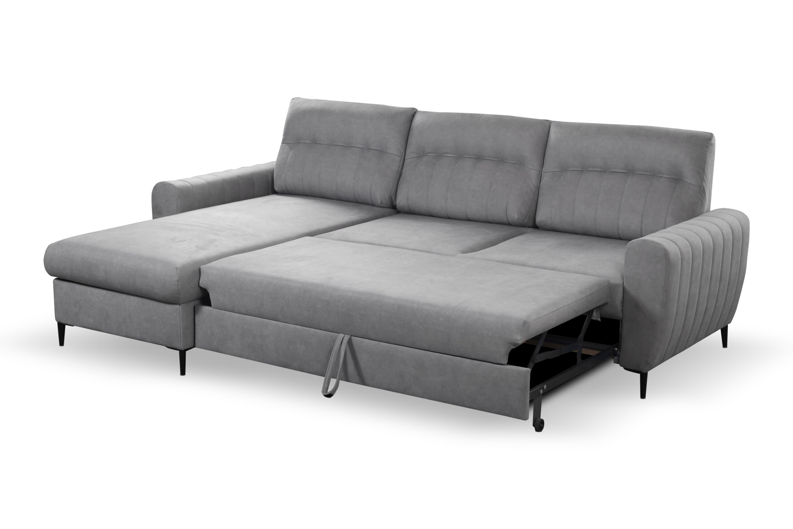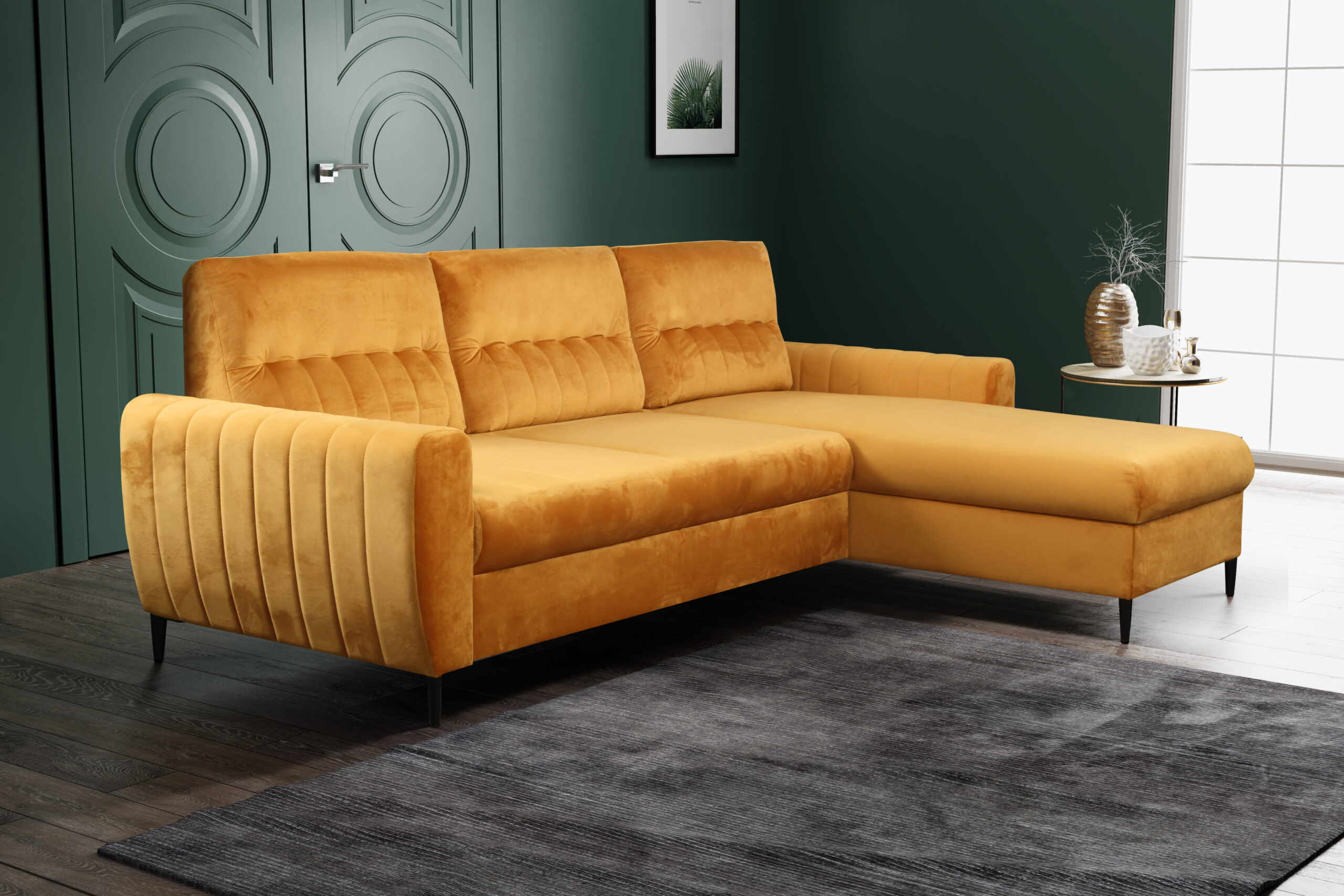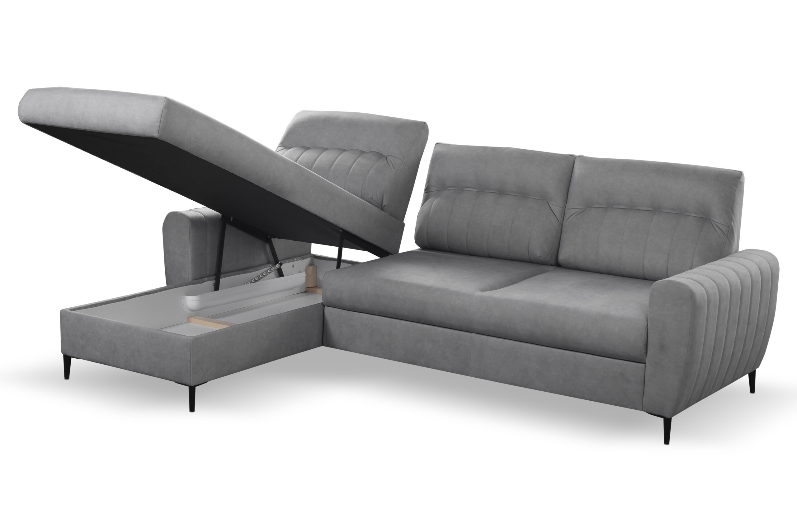 DALIA to narożnik, który łączy w sobie stylowy wygląd oraz funkcjonalność. Z łatwością zmienisz go w wygodne łóżko z pojemnikiem na pościel, a automat wspomagający rozkładanie pozwoli Ci to zrobić bez trudu. Tapicerowane oparcie i siedzisko ze sprężyną falistą zapewnią Ci wyjątkowy komfort podczas siedzenia lub spania. Dodatkowo, metalowe nóżki stanowią stabilne podparcie dla mebla. DALIAdoda twojemu pomieszczeniu szczególnego charakteru oraz zdecydowanie zaspokoi wszystkie wymagania.