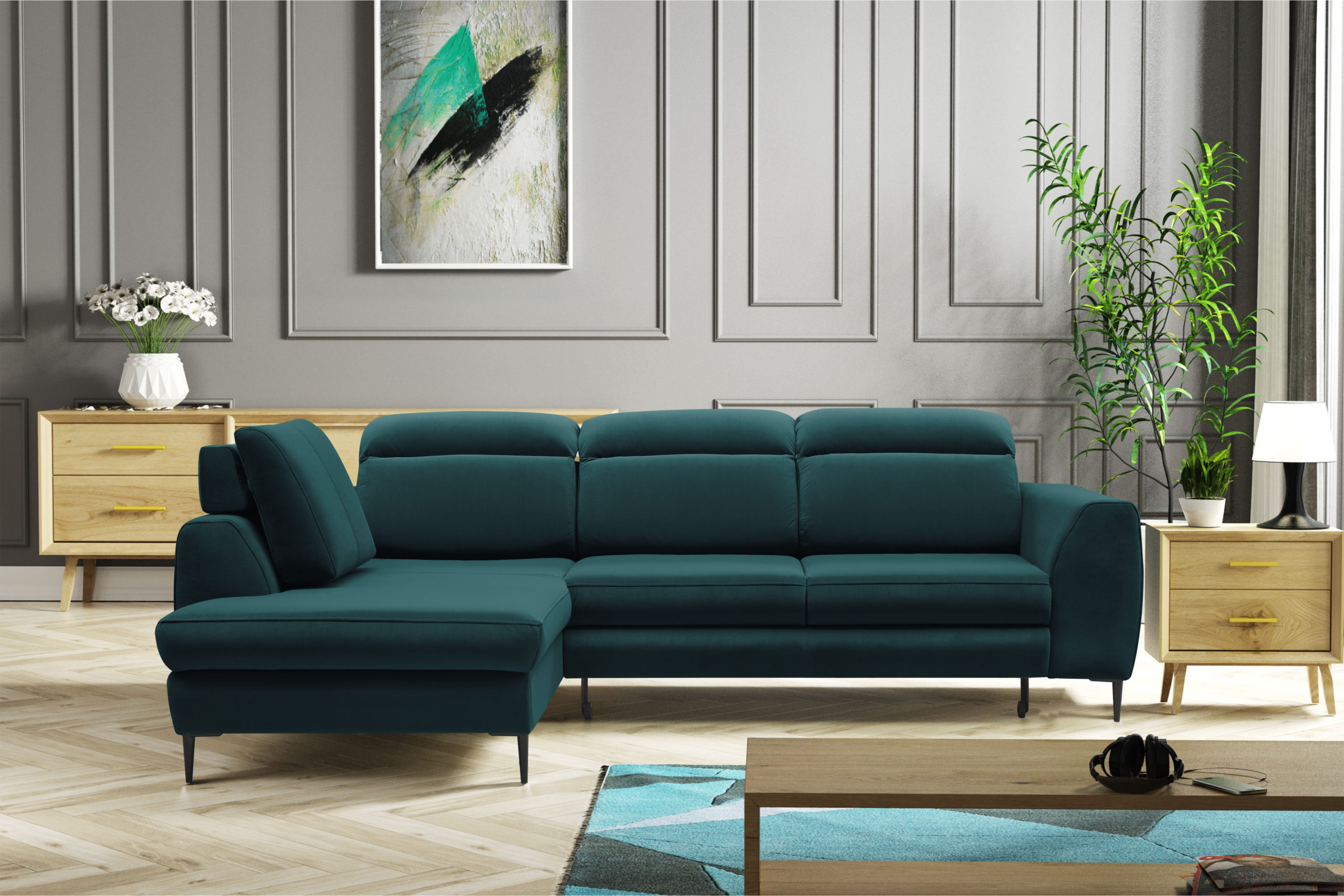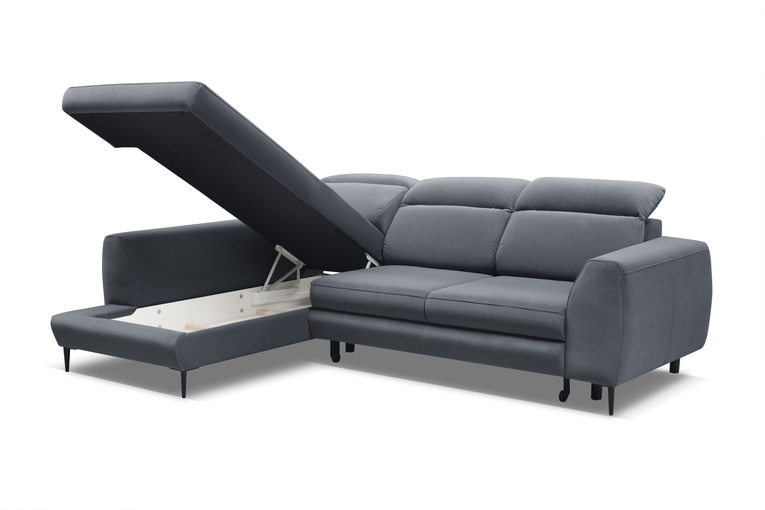 Narożnik Imperio to nowoczesny mebel, który sprawdzi się w większych jak i mniejszych pomieszczeniach. Polecamy go w tkaninie promocyjnej Matt Velvet, która posiada właściwości wodoodpornej. Imperio wyposażony jest w funkcje spania oraz pojemnik na pościel dzięki , któremu może pełnić również rolę jako łóżka.