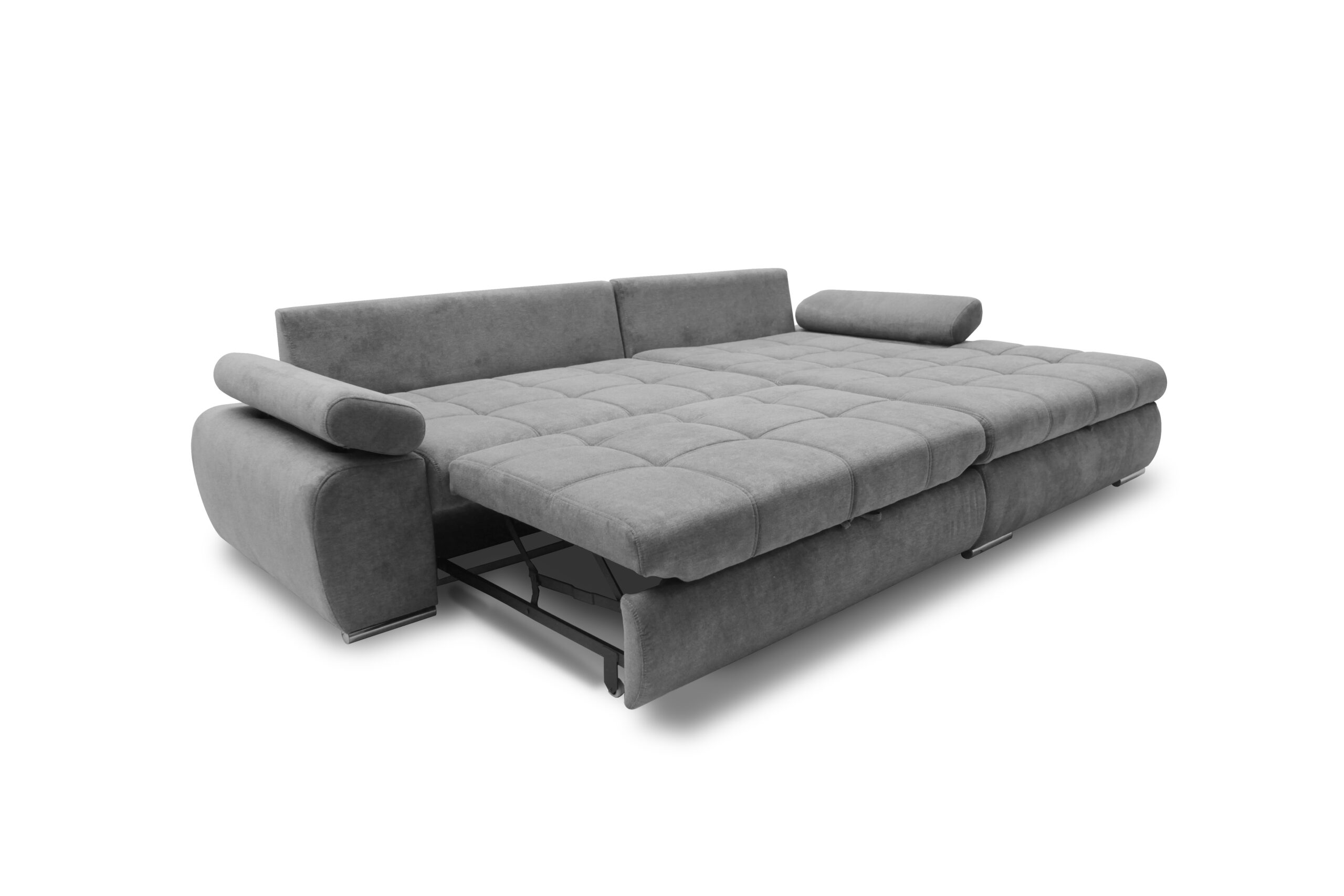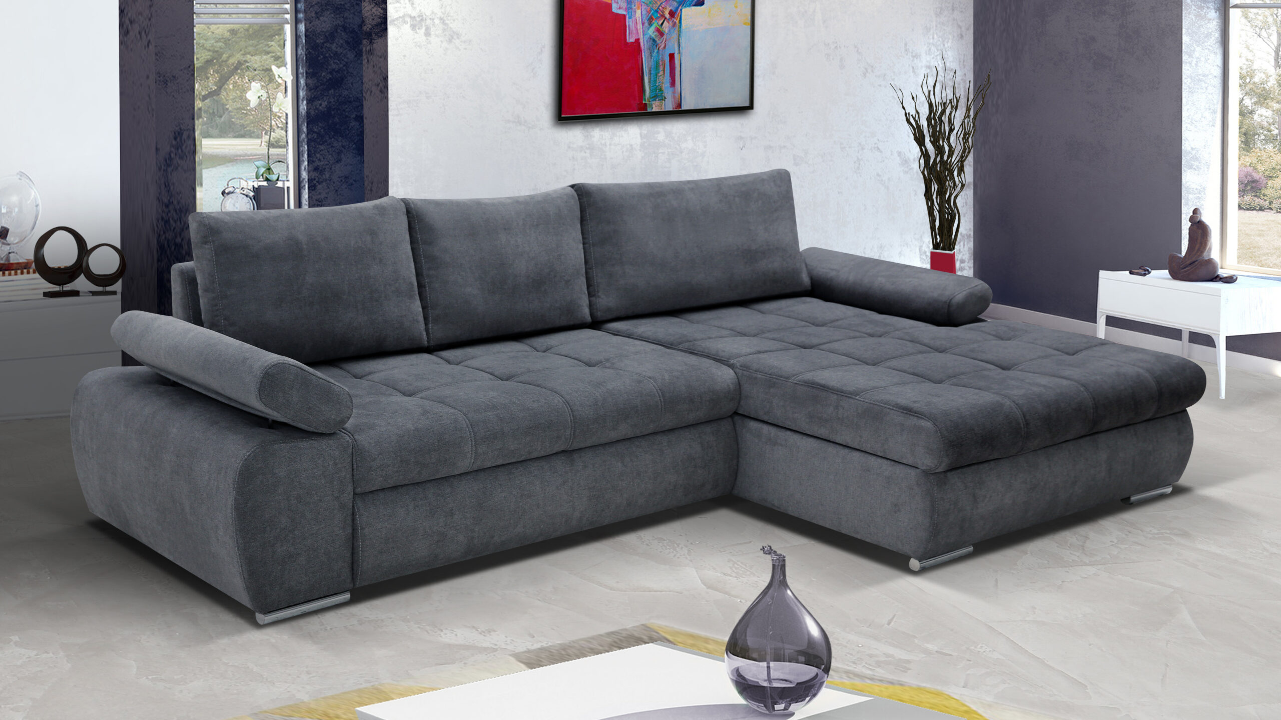Narożnik INFERNO ceni sobie przede wszystkim styl oraz funkcjonalność. Ten narożnik będzie się świetnie prezentował w każdym pomieszczeniu i świetnie się w nie wpasuje. Posiada on siedzisko oraz oparcie wykonane ze sprężyny falistej, która zapewnia komfort z użytkowania oraz dba o nasze zdrowie nie męcząc naszych pleców oraz kręgosłupa. Regulowane podłokietniki pozwolą nam dodatkowo udoskonalić naszą pozycję leżącą. Funkcja spania oraz pojemnik na pościel rozwiążą wszelakie problemy z miejscem do spędzenia nocy dla naszych gości.