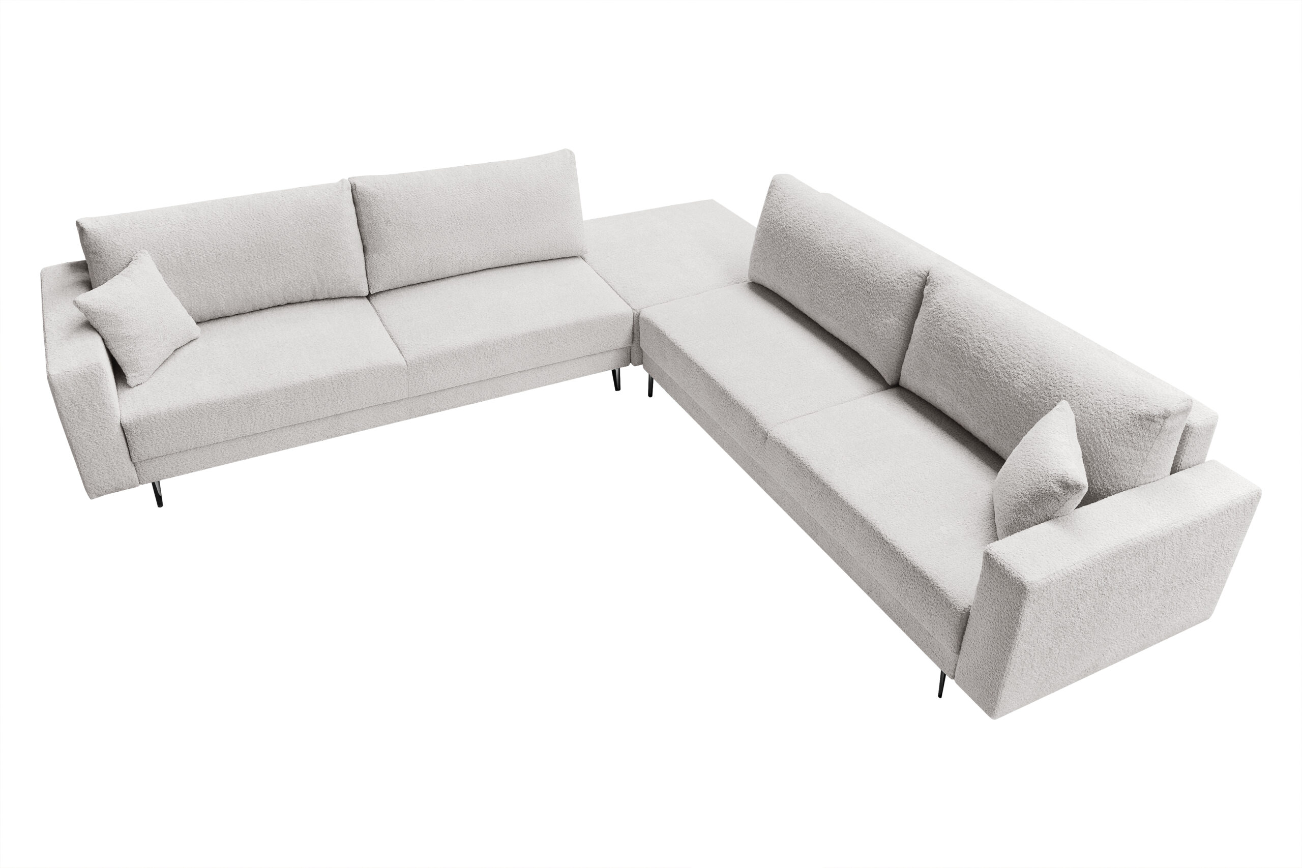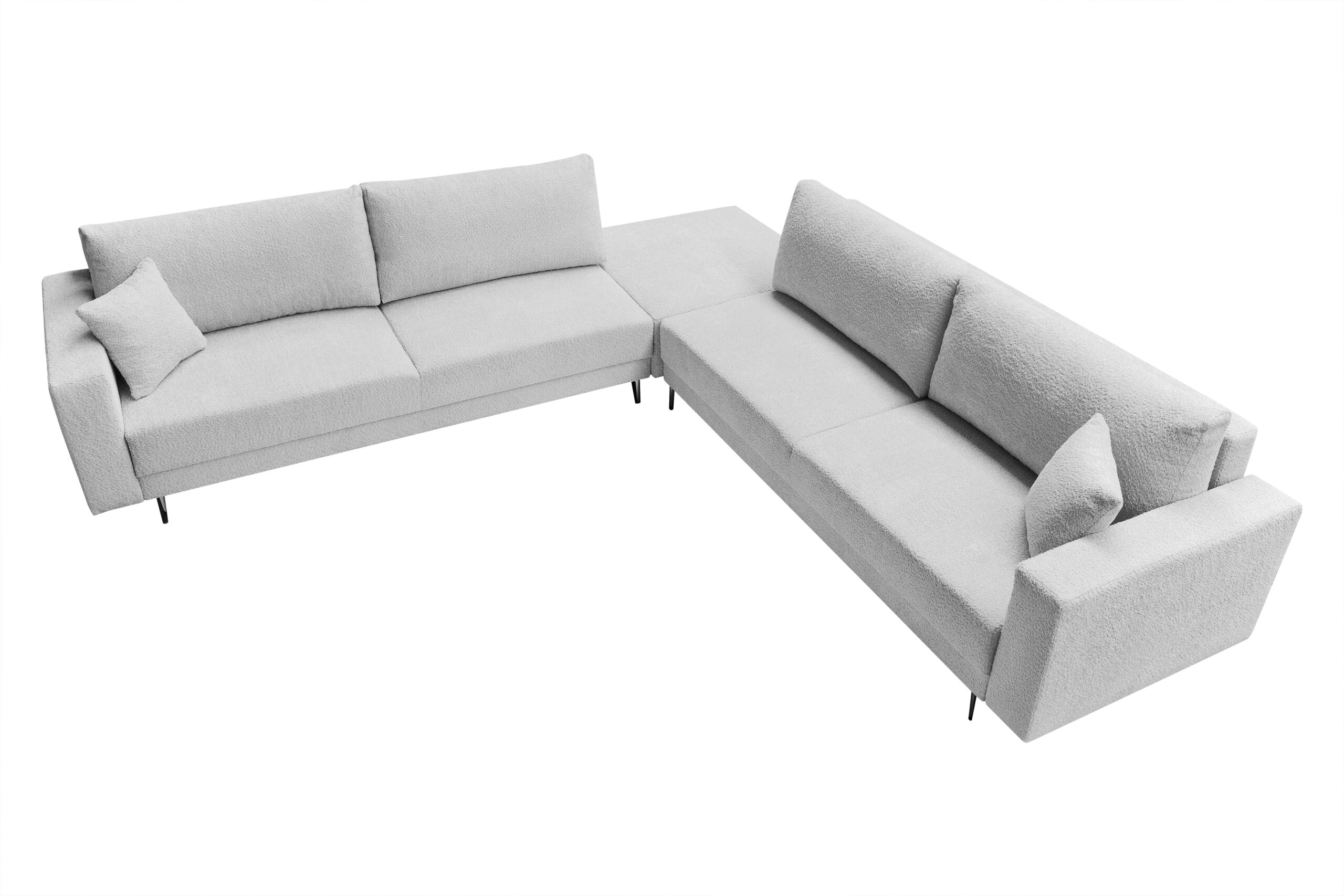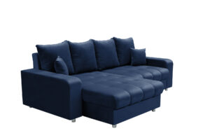 Narożnik Lena to nowoczesny narożnik, który swoim wyglądem, ciekawym i niespotykanym fasonem zachwyci każdego. Tkania, która została zaprezentowana na sofie wyróżnia się charakterystyczną supełkową fakturą. Miła w dotyku nawiązuje wyglądem do baranka dobrze wygląda i dodaje naszym meblom uroku. W siedzisku została zastosowana sprężyna falista oraz pianka wysokiej jakości gwarantując meblu na długie lata. Funkcjonalny schowek świetnie sprawdzi się jako pojemnik na pościel.