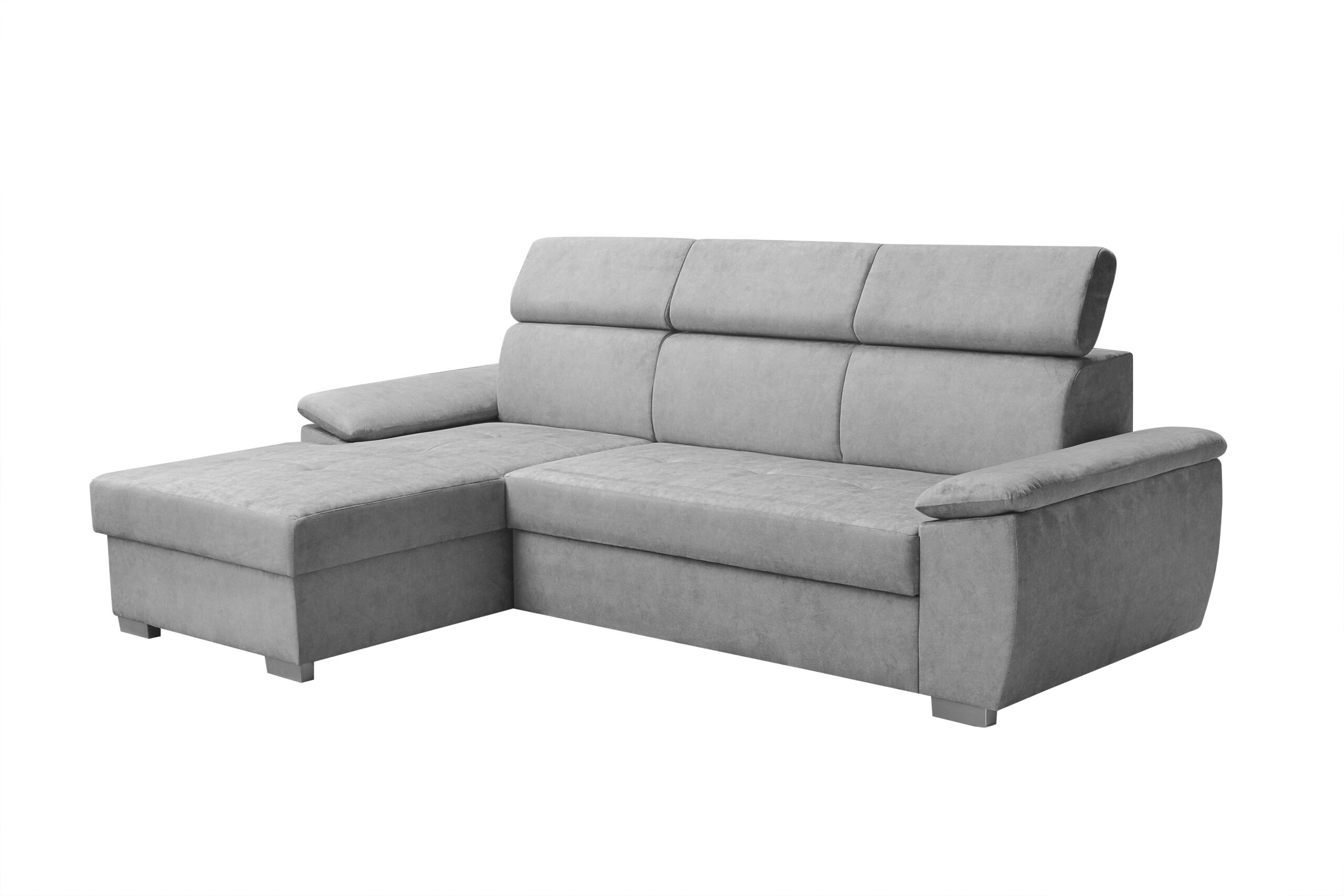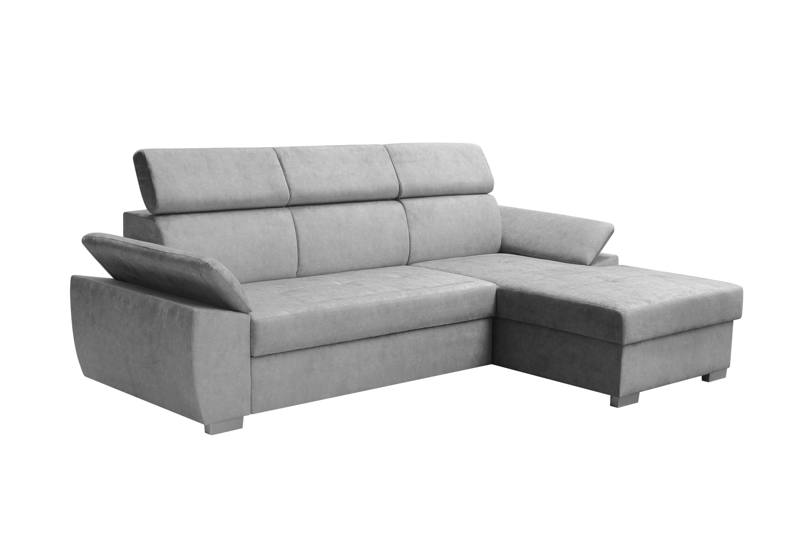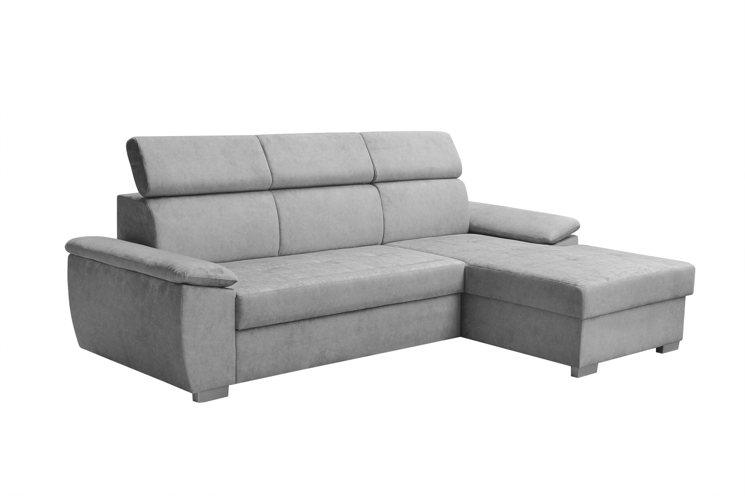 Narożnik LIBER to duży, wygodny narożnik z regulowanymi zagłówkami. Strona narożnika do wyboru przed zakupem prawa bądź lewa. Jego siedzisko wykonane jest ze sprężyny falistej oraz wysokiej jakości pianki poliuretanowej. Codzienne użytkowanie ułatwi funkcja spania oraz pojemnik na pościel.