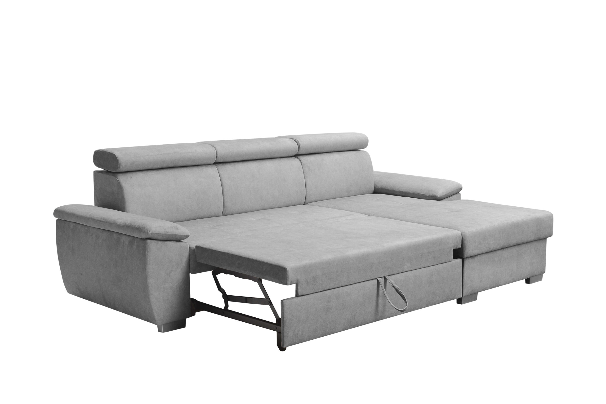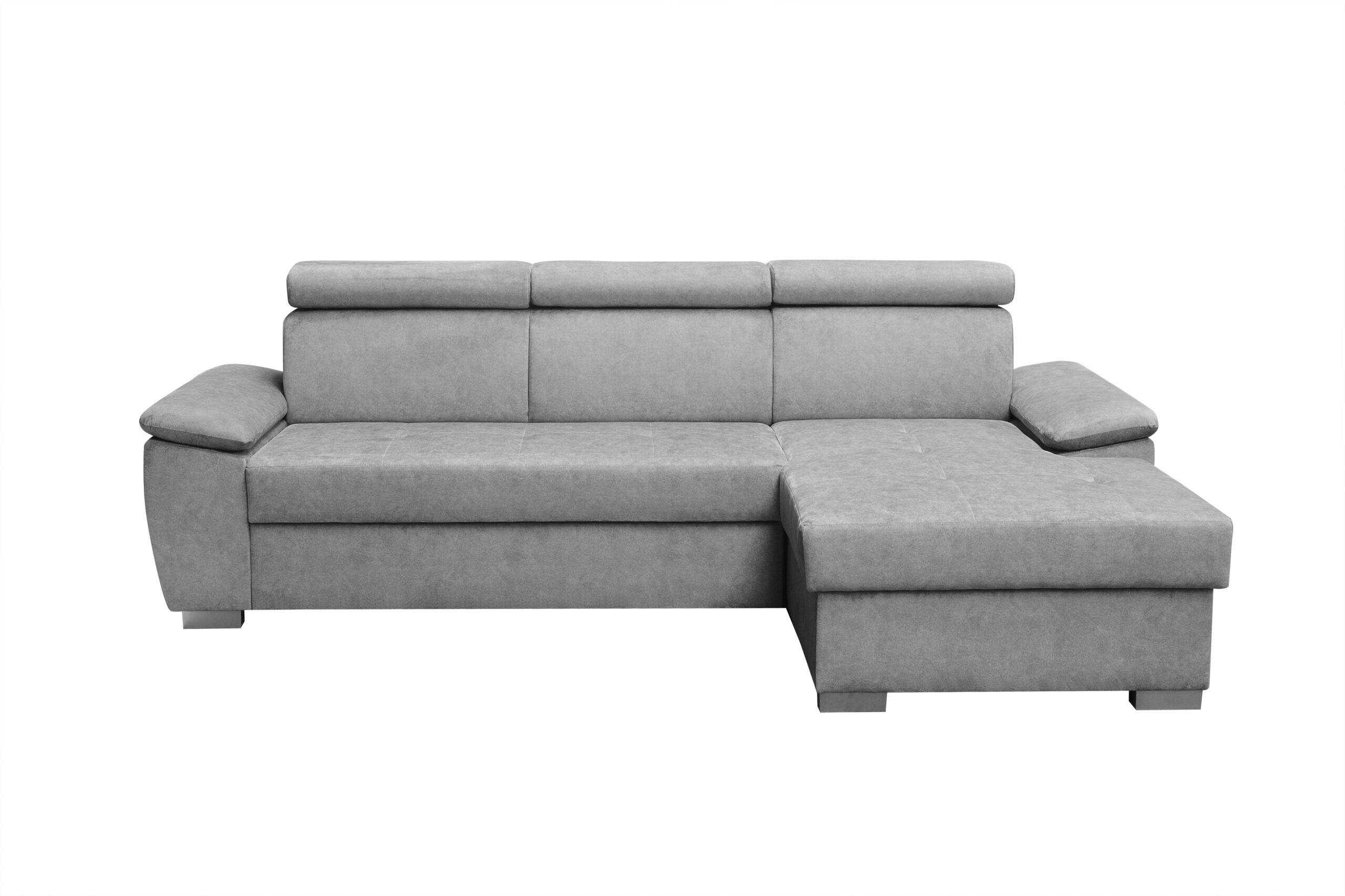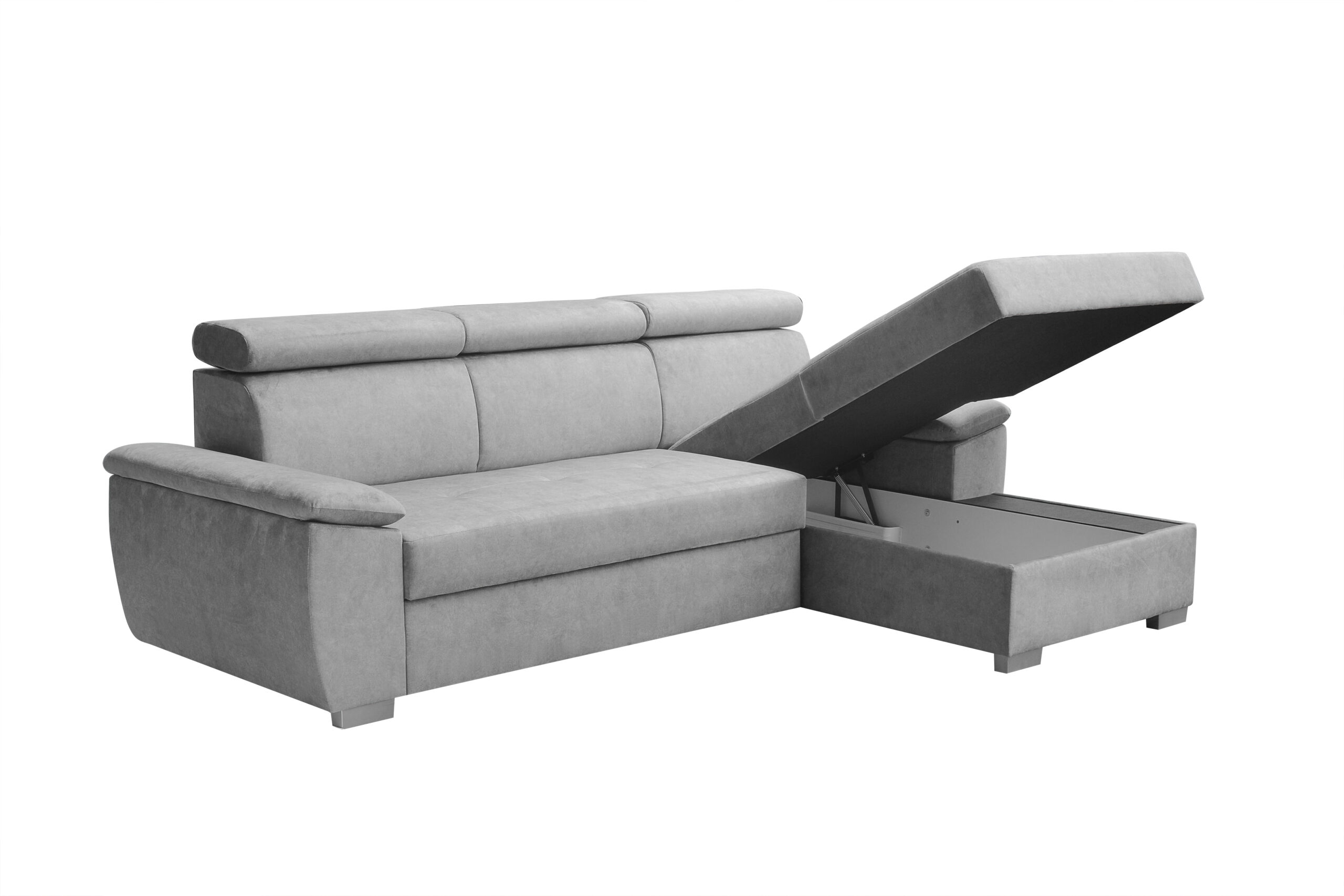 Narożnik LIBER to duży, wygodny narożnik z regulowanymi zagłówkami. Strona narożnika do wyboru przed zakupem prawa bądź lewa. Jego siedzisko wykonane jest ze sprężyny falistej oraz wysokiej jakości pianki poliuretanowej. Codzienne użytkowanie ułatwi funkcja spania oraz pojemnik na pościel.