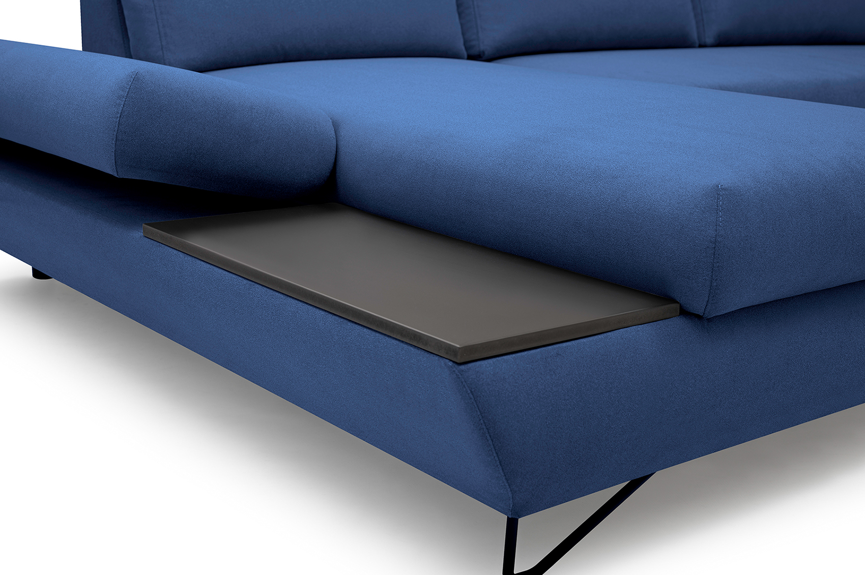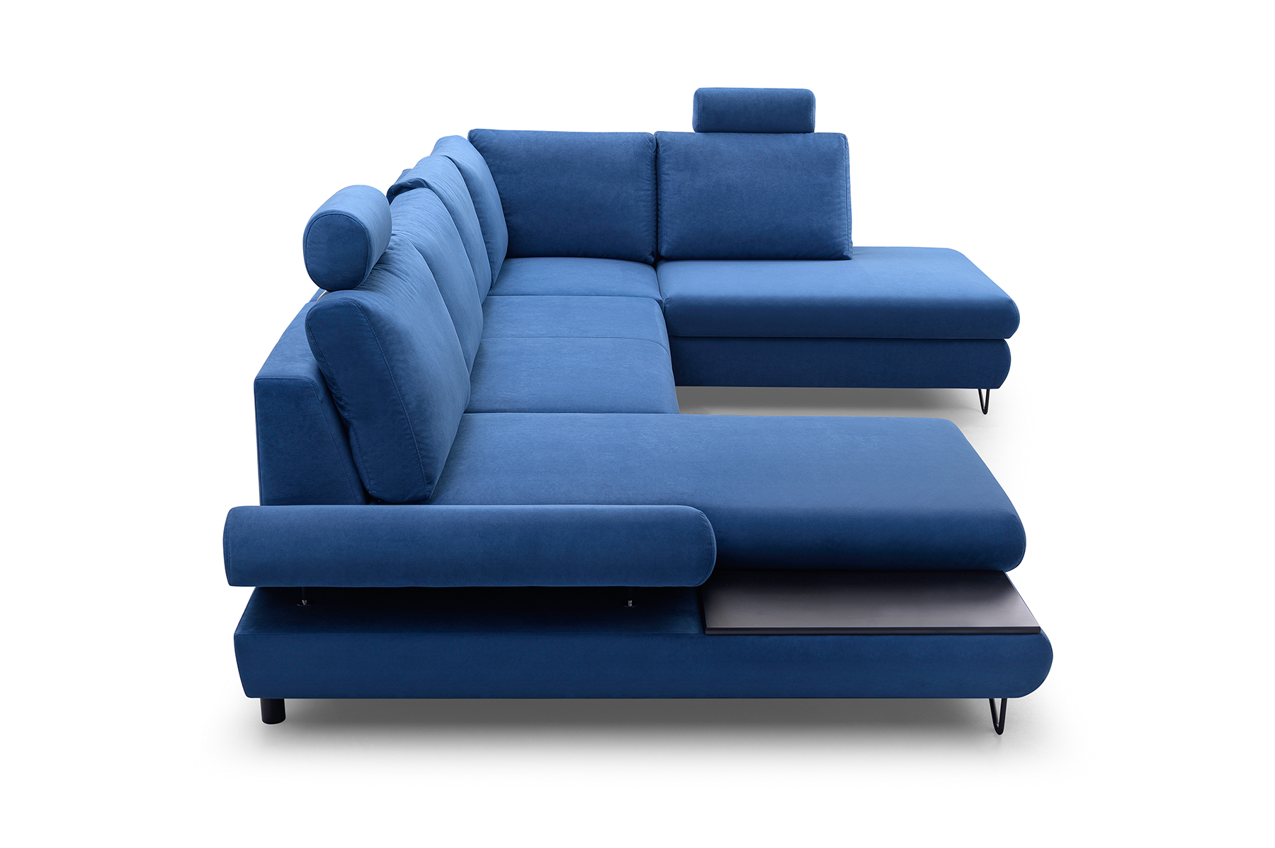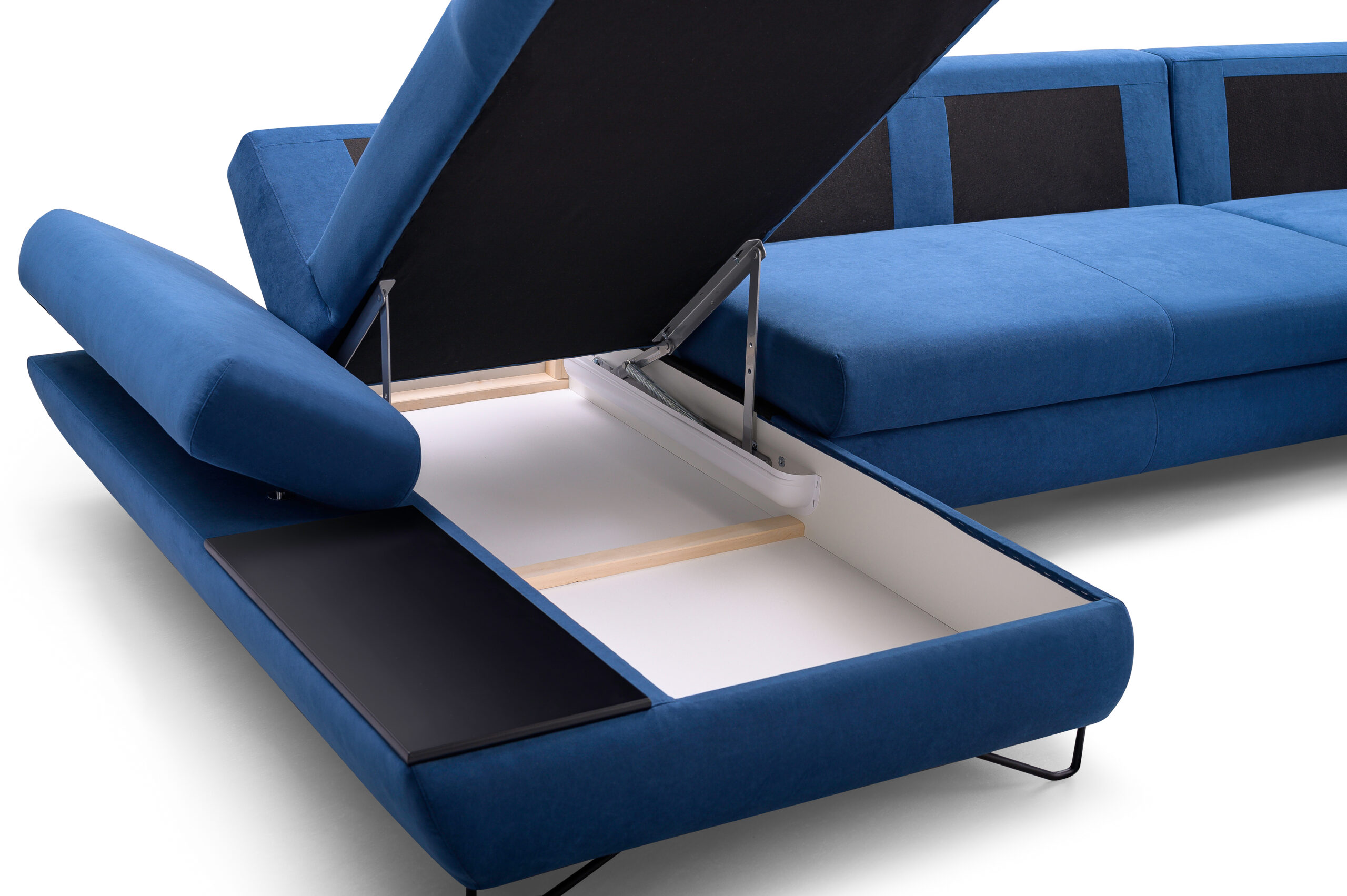Narożnik LOFT III to elegancki mebel zaprojektowany z myślą o wygodnym wypoczynku. Posiada funkcję spania, co pozwala na szybkie i łatwe przekształcenie go w wygodne łóżko dla gości. Wewnątrz narożnika znajduje się pojemnik na pościel, który pomaga w przechowywaniu pościeli i innych akcesoriów. Automatyczny system wspomagający rozkładanie ułatwia użytkowanie mebla.