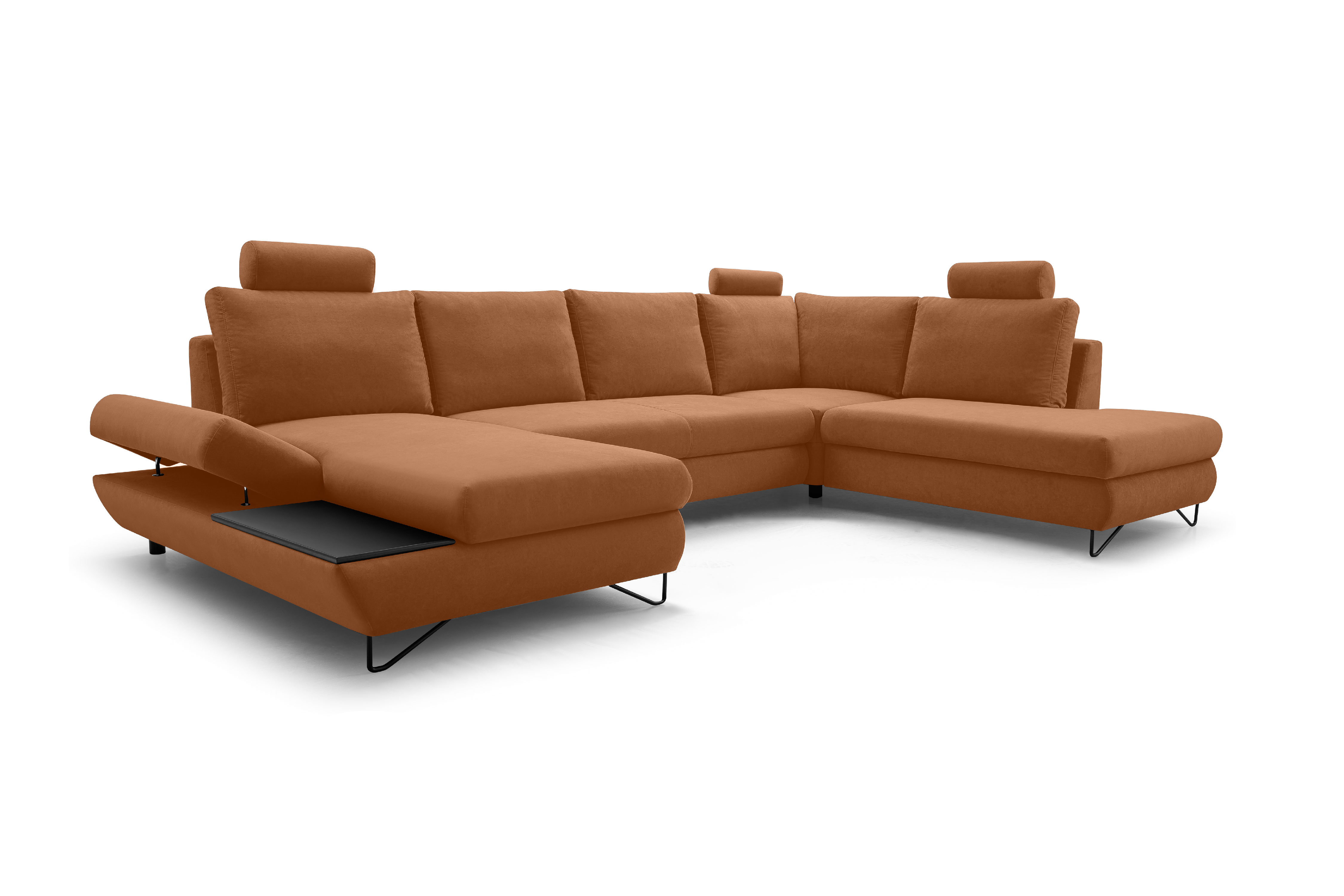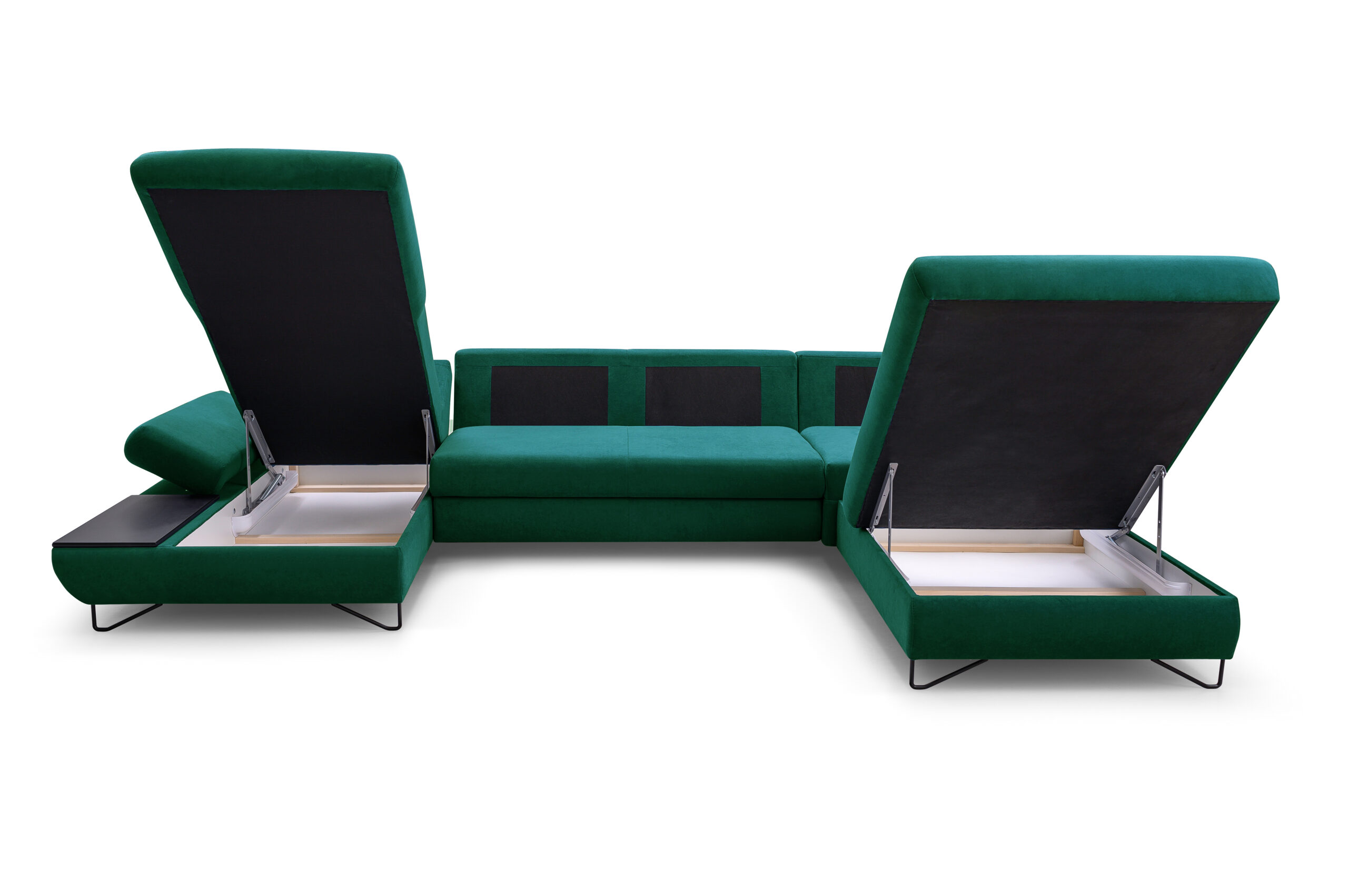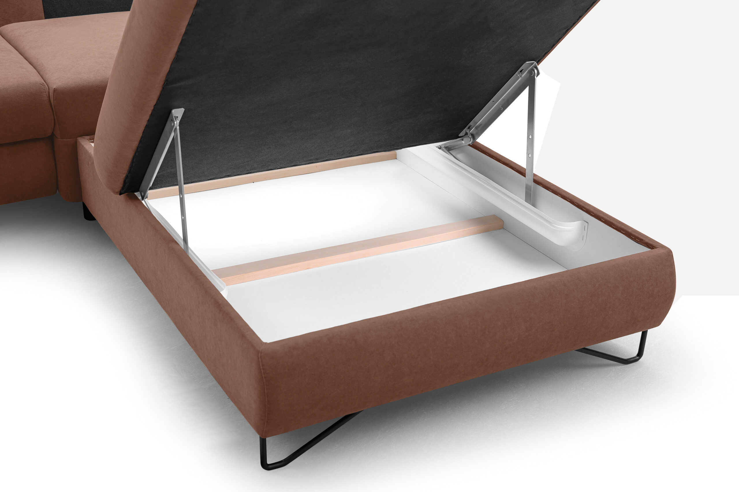 Narożnik LOFT III to elegancki mebel zaprojektowany z myślą o wygodnym wypoczynku. Posiada funkcję spania, co pozwala na szybkie i łatwe przekształcenie go w wygodne łóżko dla gości. Wewnątrz narożnika znajduje się pojemnik na pościel, który pomaga w przechowywaniu pościeli i innych akcesoriów. Automatyczny system wspomagający rozkładanie ułatwia użytkowanie mebla.