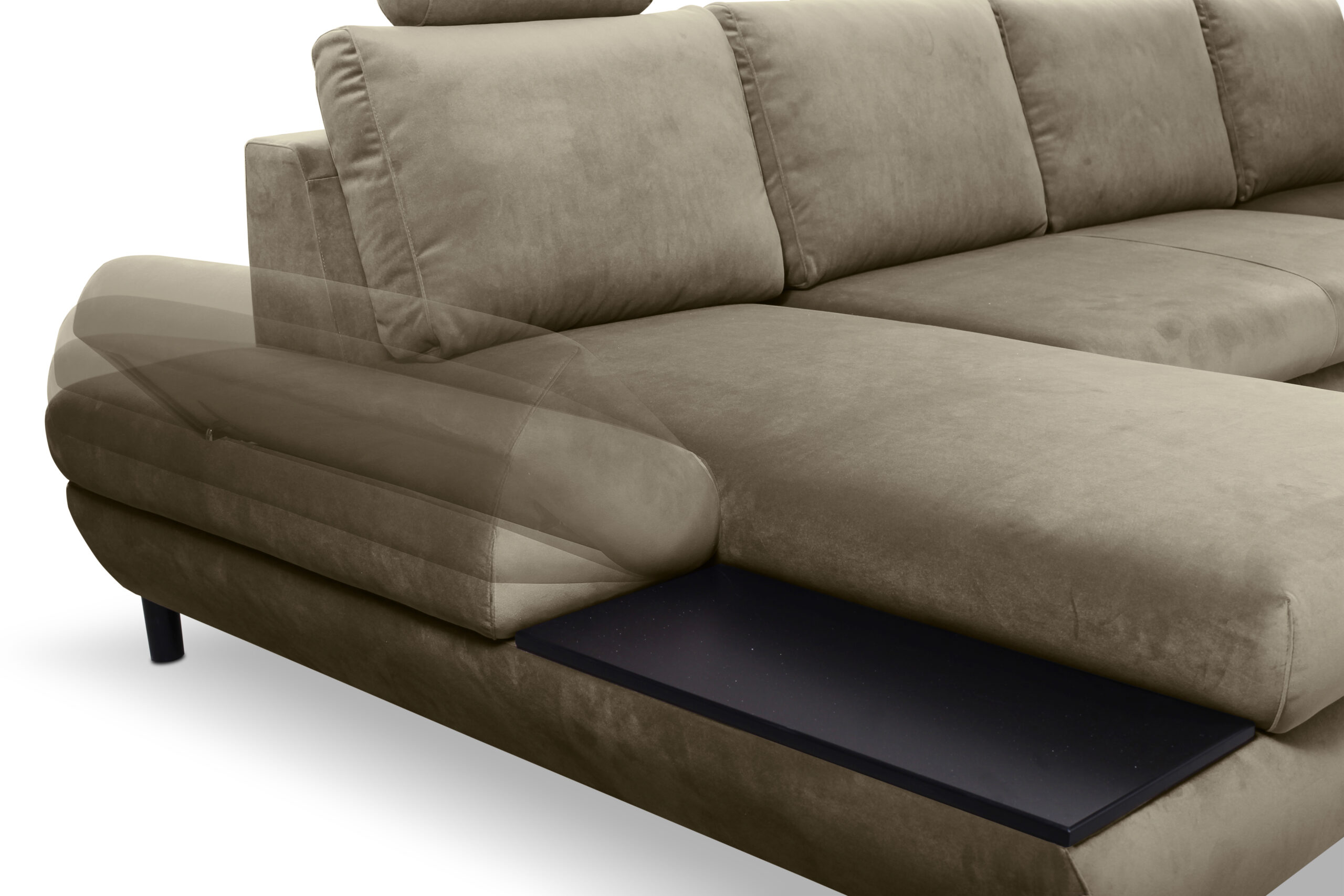 Tapicerowane oparcie i dwa regulowane zagłówki zapewniają wygodę podczas siedzenia lub leżenia. Regulowany podłokietnik oraz sprężyna falista w siedzisku zapewniają jeszcze większy komfort użytkowania. Narożnik LOFT III to połączenie stylowego designu z funkcjonalnymi rozwiązaniami, które sprawią, że wypoczynek stanie się przyjemnością.