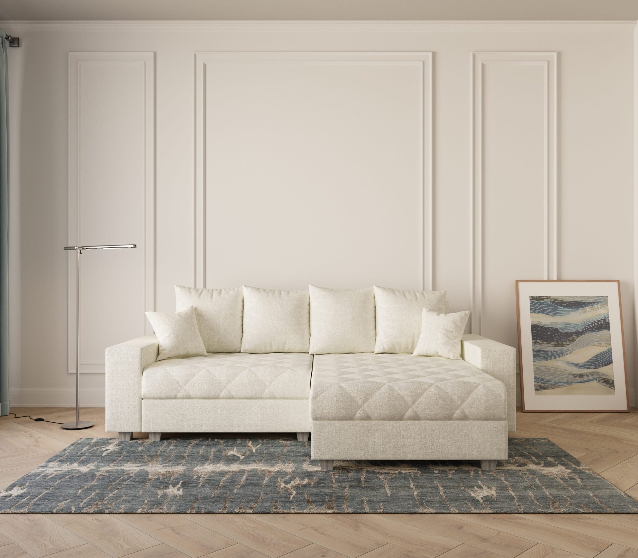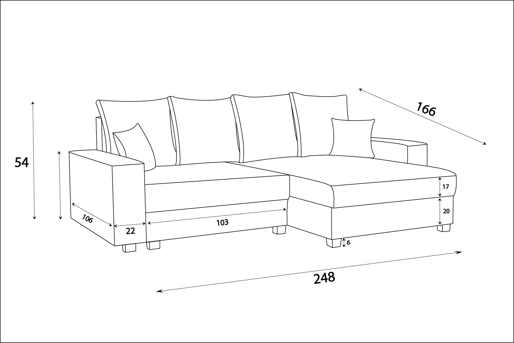 To uniwersalny mebel dzięki, któremu Klient nie musi określać strony przed zakupem ponieważ samodzielnie może podczas montażu ją wybrać. Pikowania oraz przeszycia sprawiają, ze mebel dodaje elegancji Twojemu wnętrzu. Wykonany z wysokiej jakości komponentów pozwoli cieszyć się nim na długie lata. Narożnik posiada dwa pojemniki na pościel dzięki, którym zyskają Państwo dodatkową przestrzeń na przechowywanie. Funkcja spania pozwoli w szybki sposób zmienić Twój narożnik na łózko.
