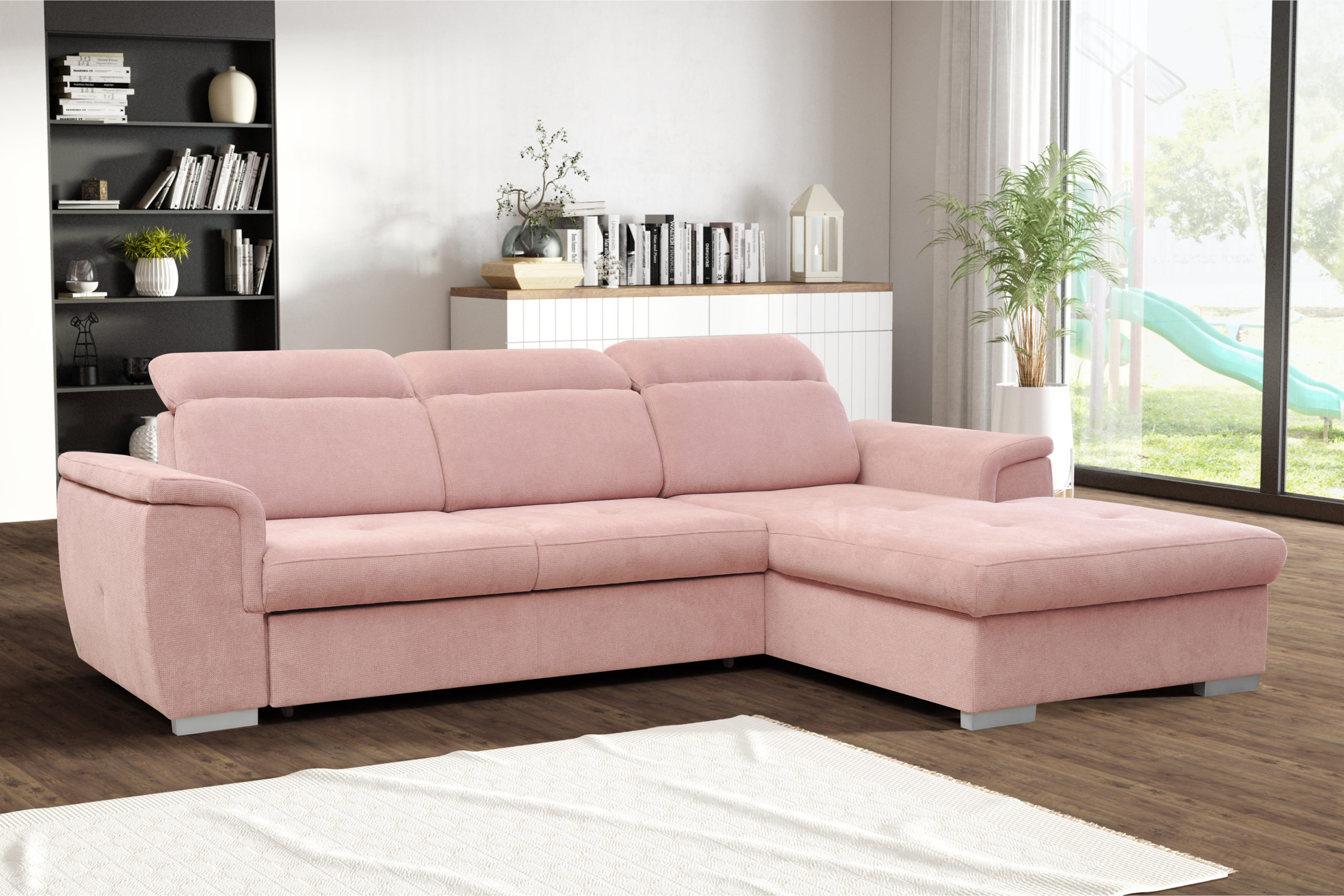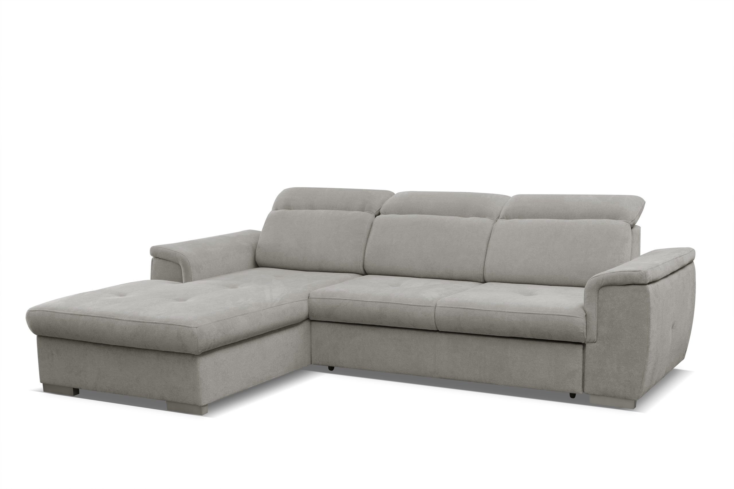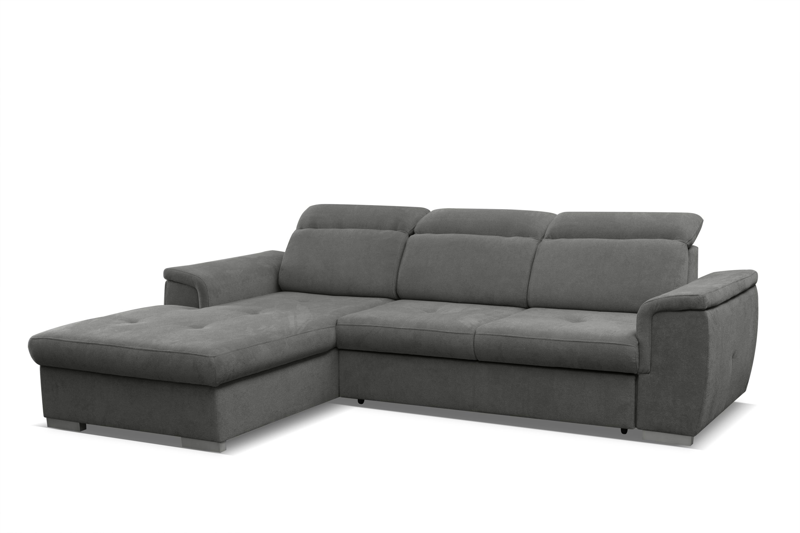 Narożnik Otto z pewnością dopasuje się do każdego wnętrza. Jego regulowane zagłówki i siedzisko wypełnione sprężyną falistą oraz pianką poliuretanową zapewni komfort na wysokim poziomie. Ponadto narożnik posiada funkcję spania oraz pojemnik na pościel.