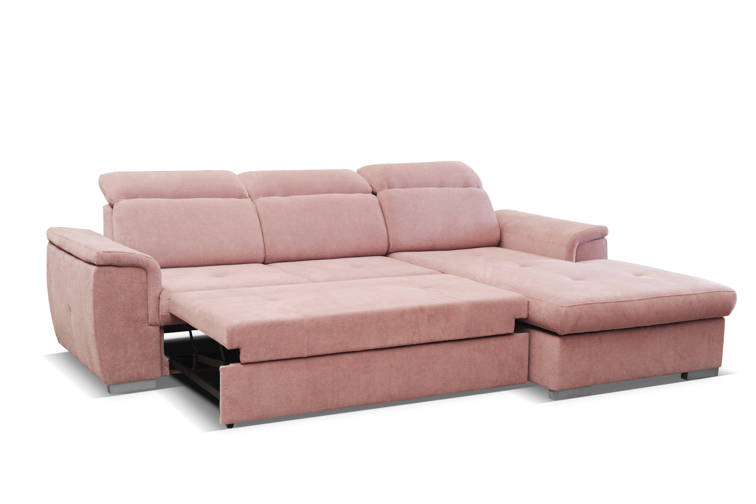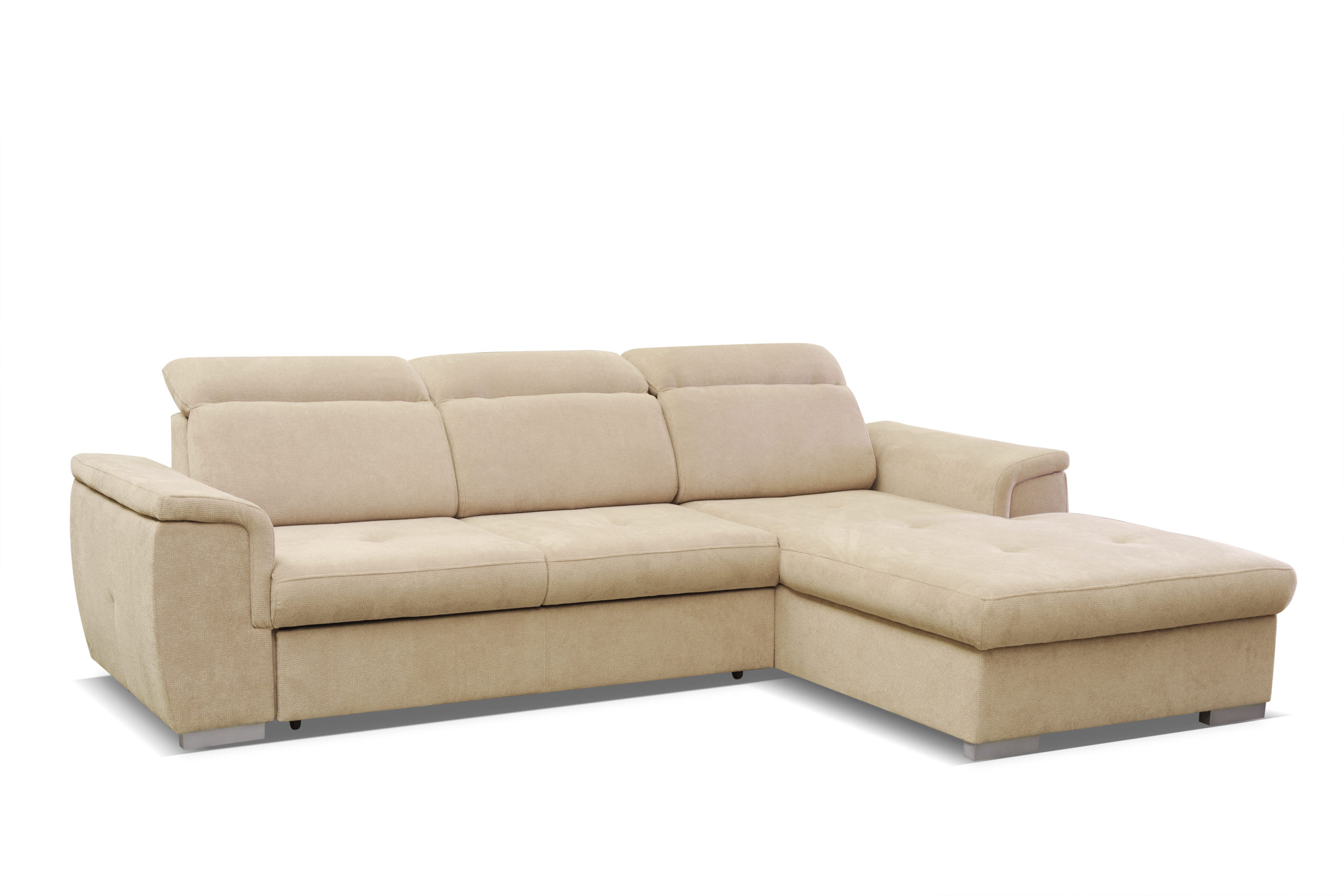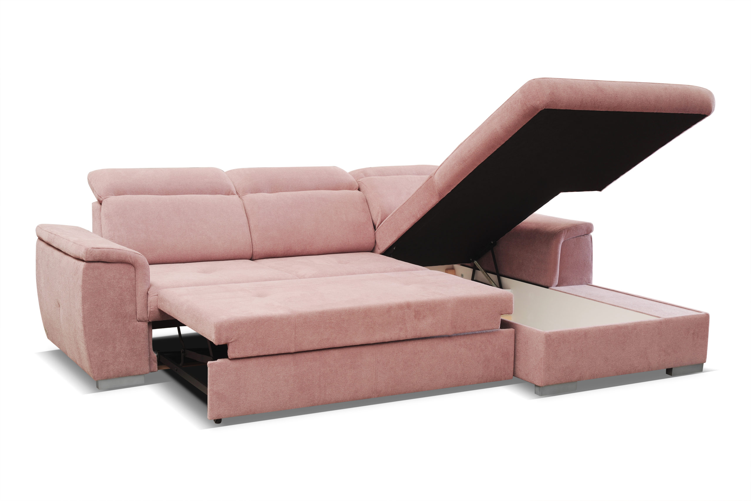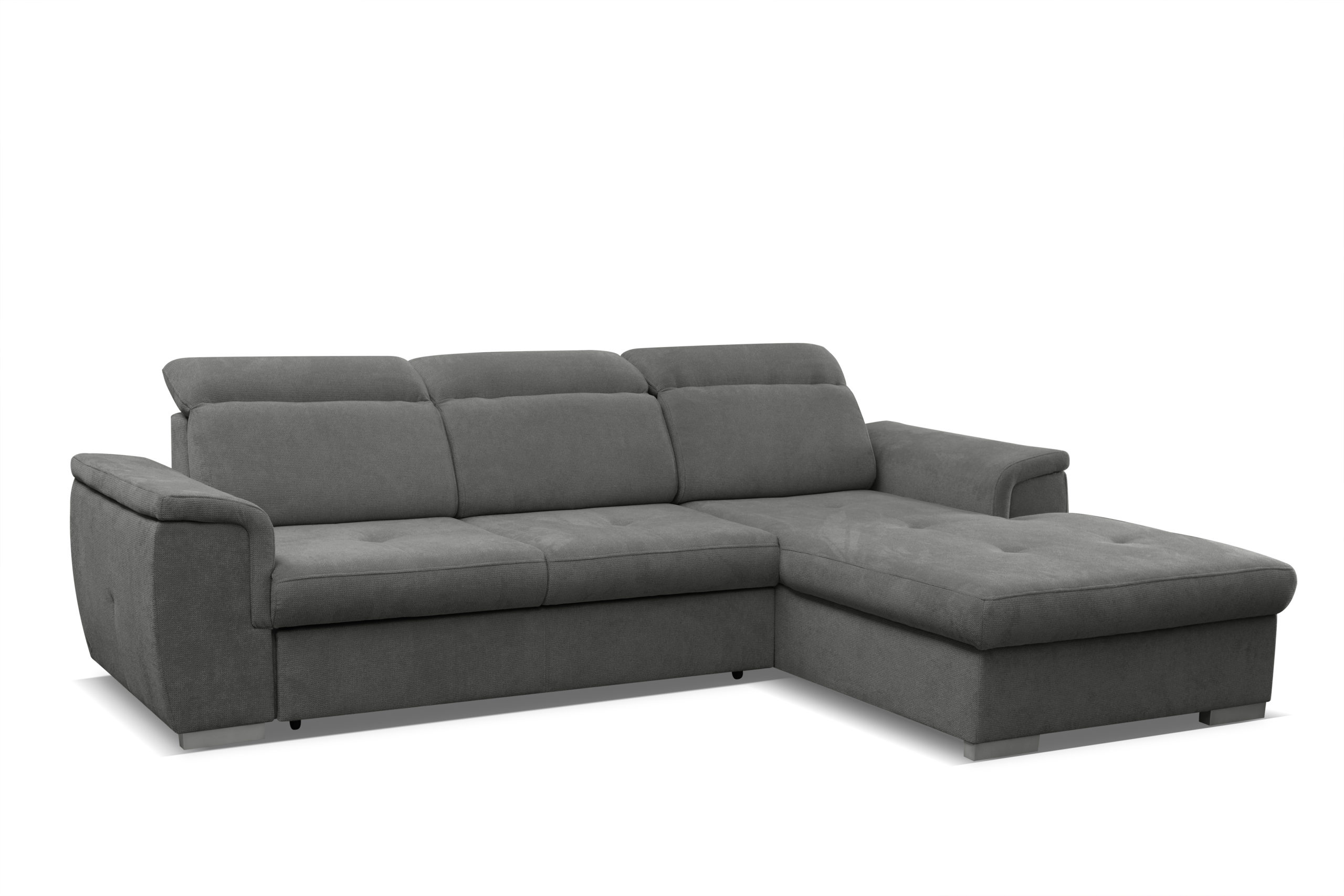 Narożnik Otto z pewnością dopasuje się do każdego wnętrza. Jego regulowane zagłówki i siedzisko wypełnione sprężyną falistą oraz pianką poliuretanową zapewni komfort na wysokim poziomie. Ponadto narożnik posiada funkcję spania oraz pojemnik na pościel.