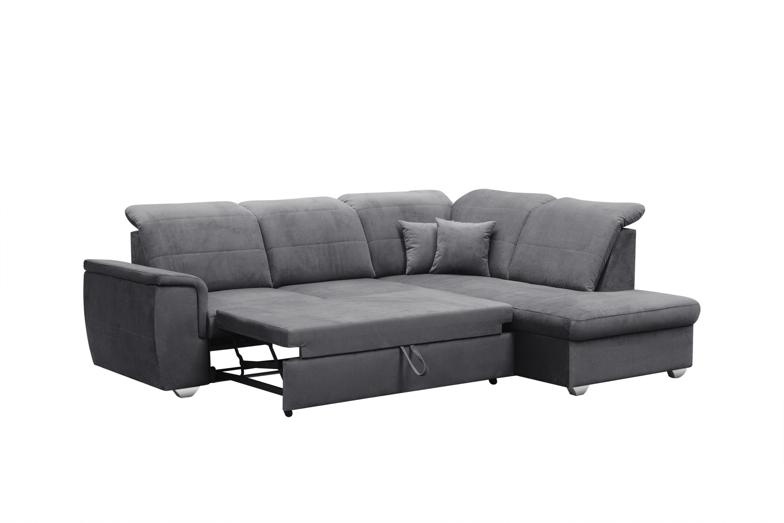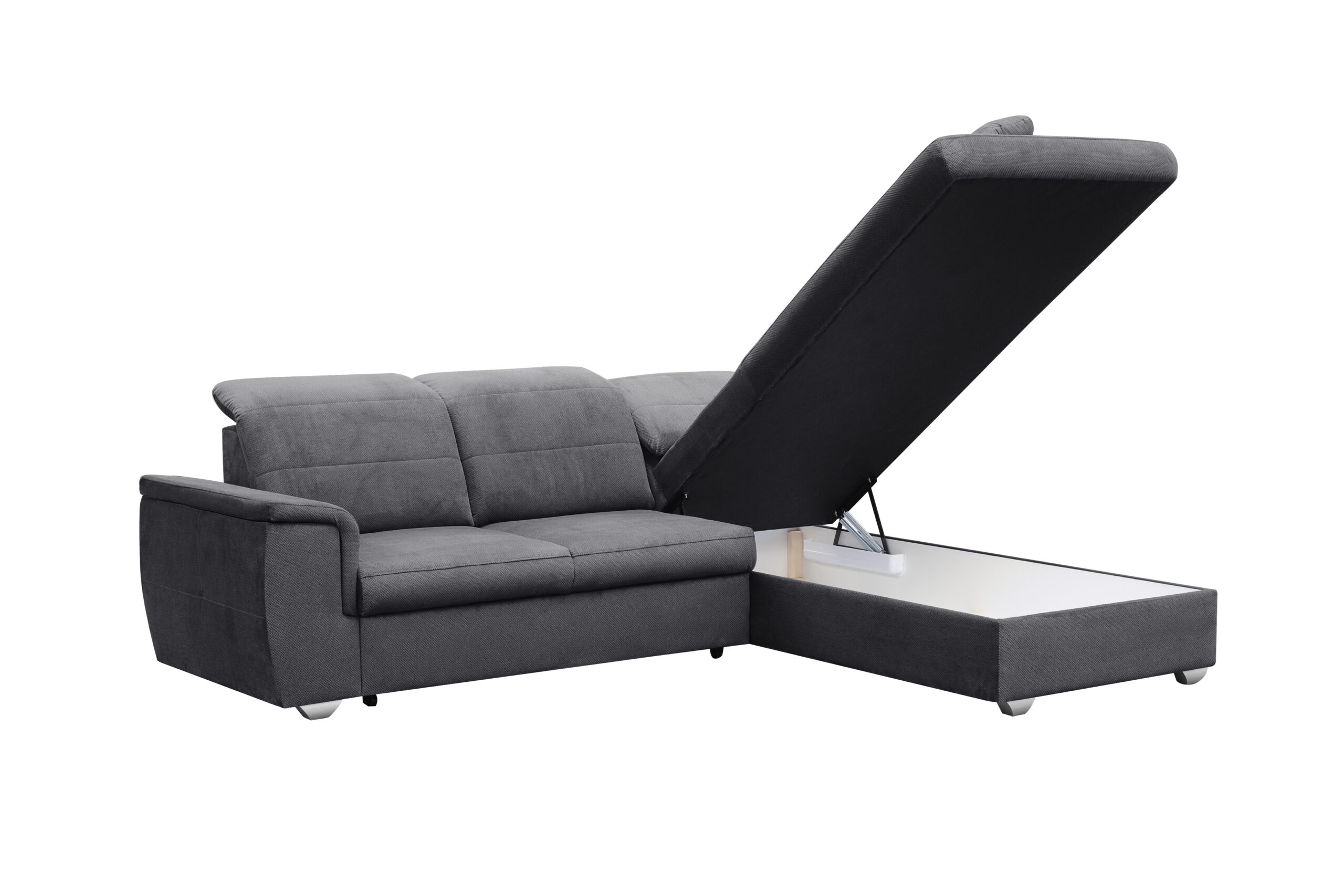 Narożnik Sidney posiada charakterystyczne cechy, które z pewnością przypadną do gustu. Regulowane zagłówki sprawiają, że narożnik może zostać dostosowany do twoich wszelakich potrzeb. Posiada sprężynę falistą, która zapewni komfort w użytkowaniu oraz zadba o zdrowie naszego kręgosłupa. Pojemnik na pościel oraz funkcja spania to idealne rozwiązanie dla naszych noclegujących gości.