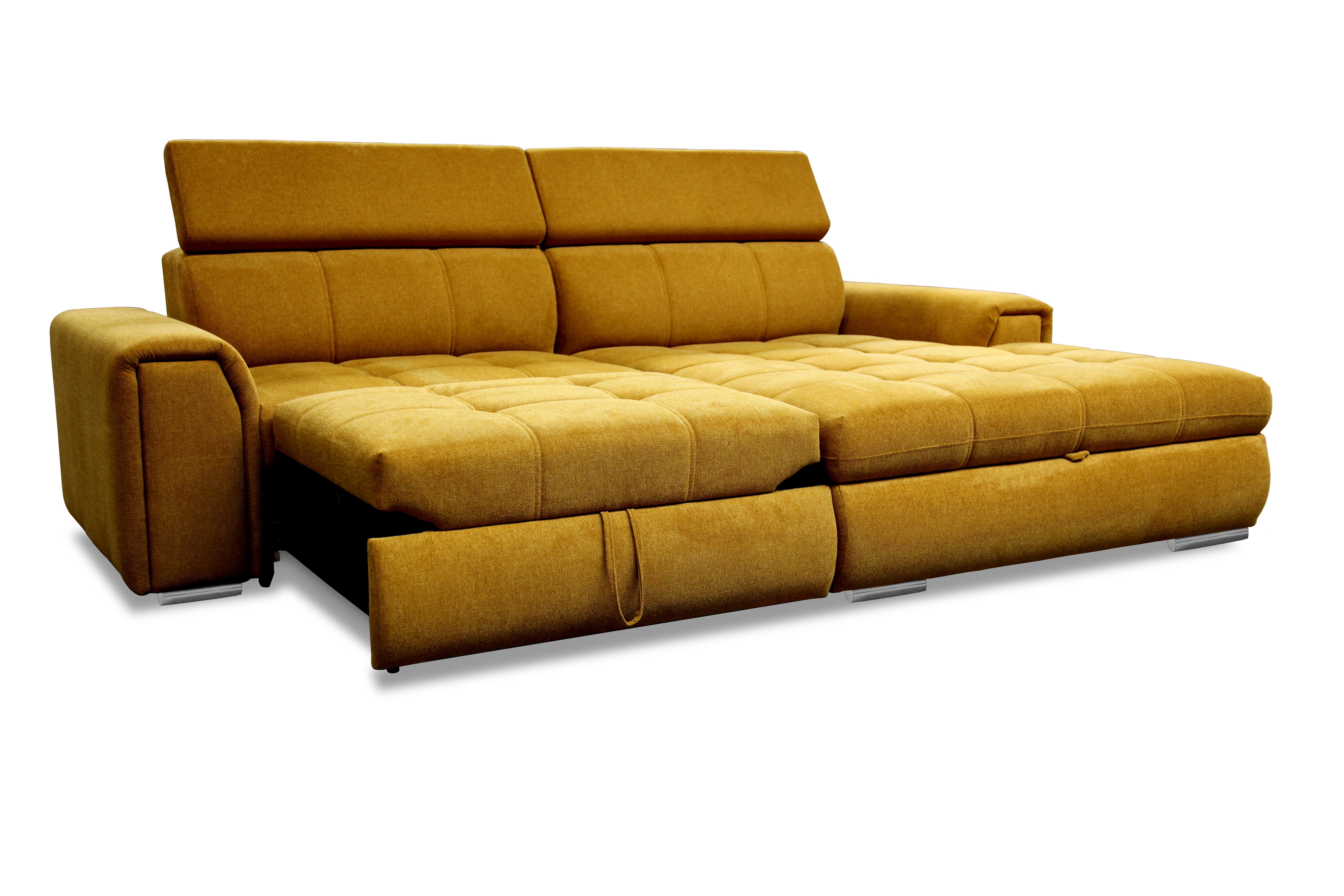 Narożnik posiada także funkcję spania, dzięki której może posłużyć jako wygodne łóżko dla odwiedzających nas gości.