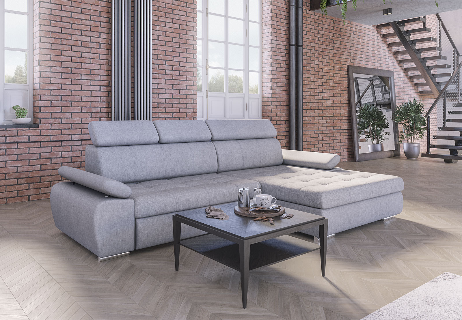 Narożnik VILDE to doskonałe rozwiązanie dla Twojego salonu. Wyposażony w sprężynę falistą, zapewnia niezrównany komfort podczas siedzenia. Dodatkowo, narożnik VILDE posiada funkcję spania, umożliwiającą szybkie przekształcenie go w wygodne łóżko dla gości oraz posiada praktyczny pojemnik na pościel, pomagający utrzymać porządek w pomieszczeniu. Dzięki regulowanym zagłówkom i podłokietnikom, możesz dostosować narożnik do swoich indywidualnych preferencji, zapewniając optymalny relaks i wygodę.