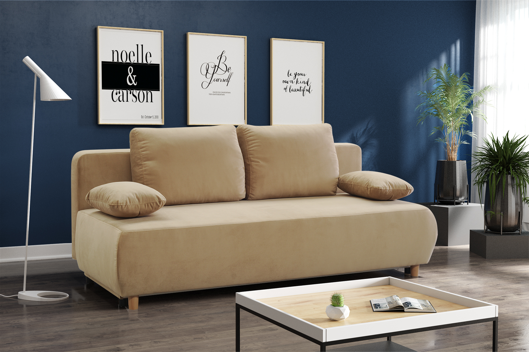 Sofa Daisy to bardzo funkcjonalny meble, który sprawdzi się w salonach jak i mniejszych pomieszczeniach, wyposażona w funkcję spania jest jej dodatkowym atutem. Siedzisko wypełnione jest w sprężynę falistą oraz wysokiej jakości pianke poliuretanowa co sprawia, że nie odkształci się i będziemy mogli się nią cieszyć  na lata.