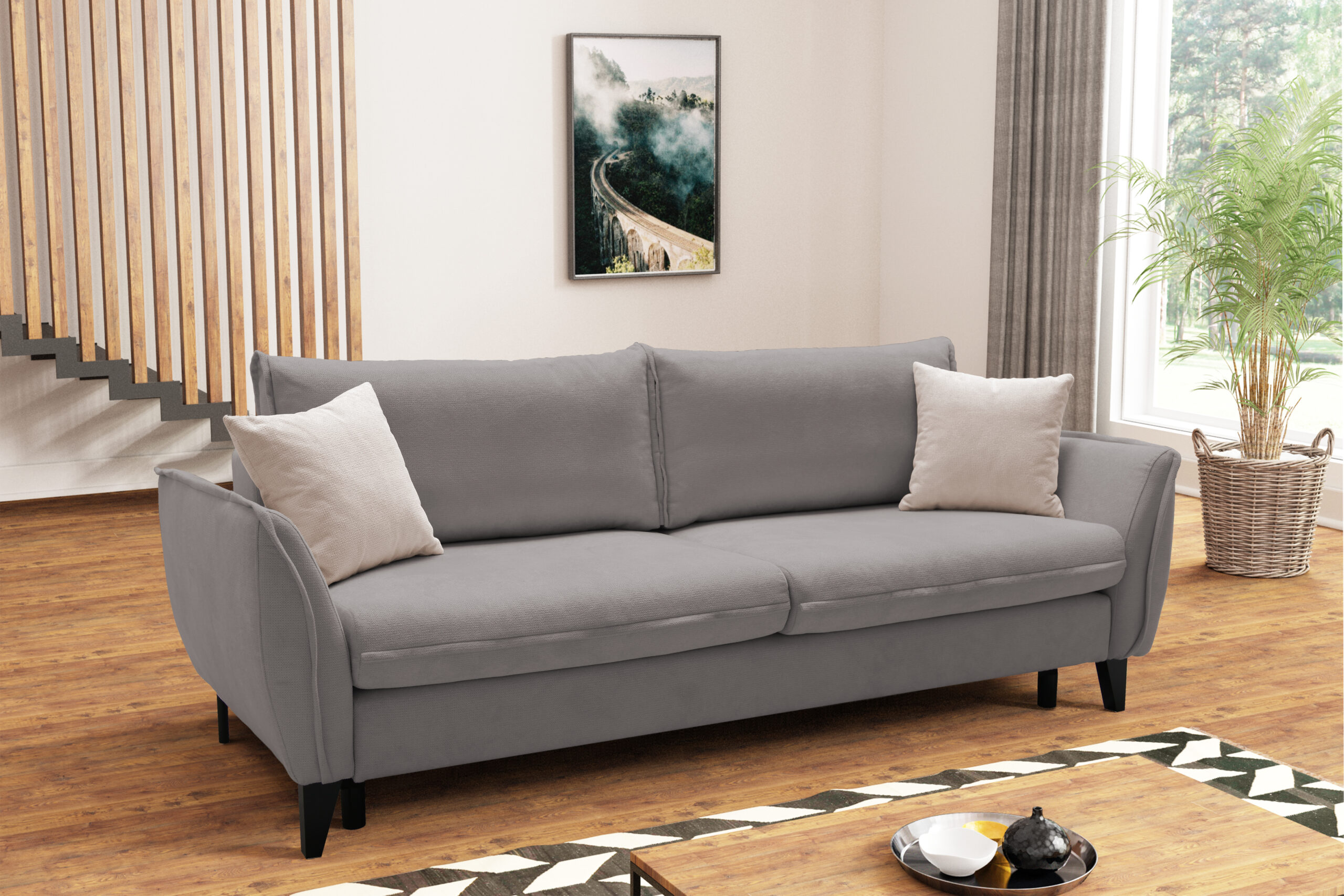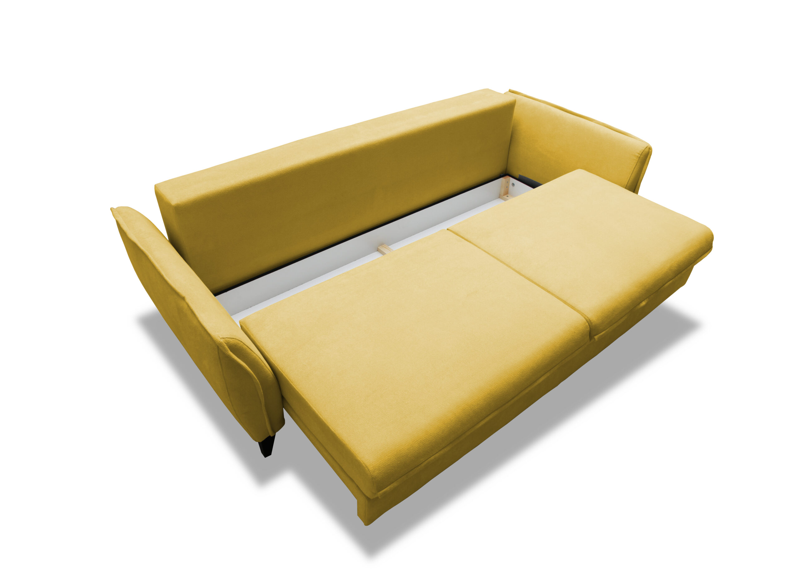 Sofa EVELINE to funkcjonalne i wygodne rozwiązanie do Twojego salonu. Wyposażona w sprężynę falistą, zapewnia doskonałe podparcie i komfort podczas siedzenia. Jednak to nie wszystko, co ma do zaoferowania. Sofa EVELINE posiada również funkcję spania, która umożliwia szybkie przekształcenie jej w wygodne łóżko dla gości. Dodatkowo, wewnątrz sofy znajduje się praktyczny pojemnik na pościel, który pomaga utrzymać porządek w pomieszczeniu.