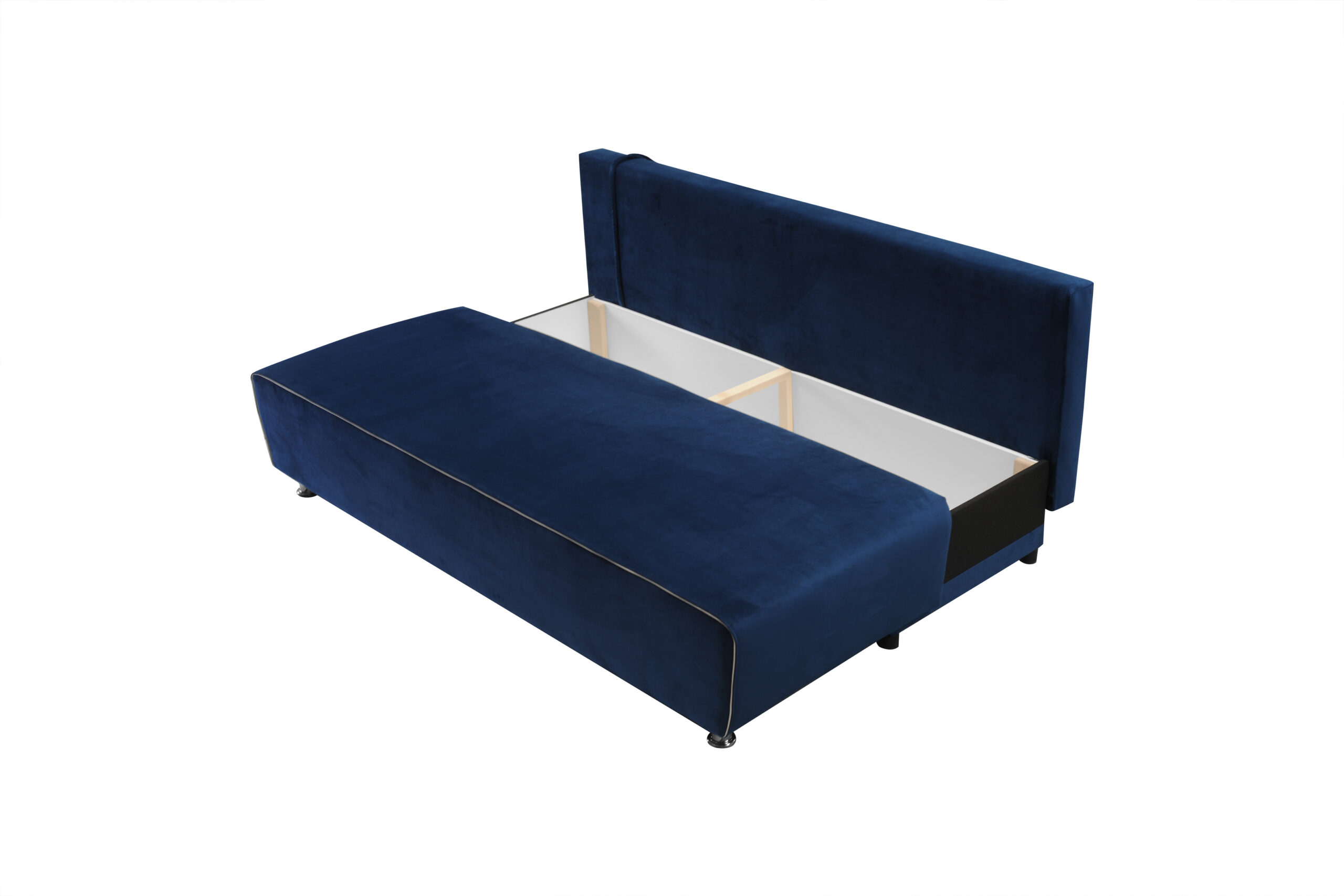 Floria to mała a zarazem gustowna sofa, który ozdobi Twoje wnętrze. Na zdjęciu przedstawiona jest w całości w tkaninie welurowej miękkiej i przyjemnej w dotyku. Dzięki sprężynie falistej w siedzisko znacznie podwyższy komfort odpoczynku. Dodatkowym atutem jest jej wielofunkcyjność czyli posiada pojemnik na pościel oraz funkcje spania.