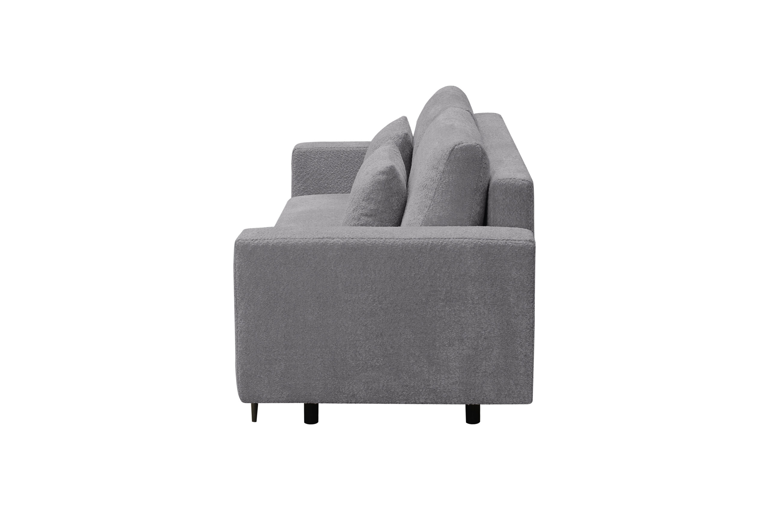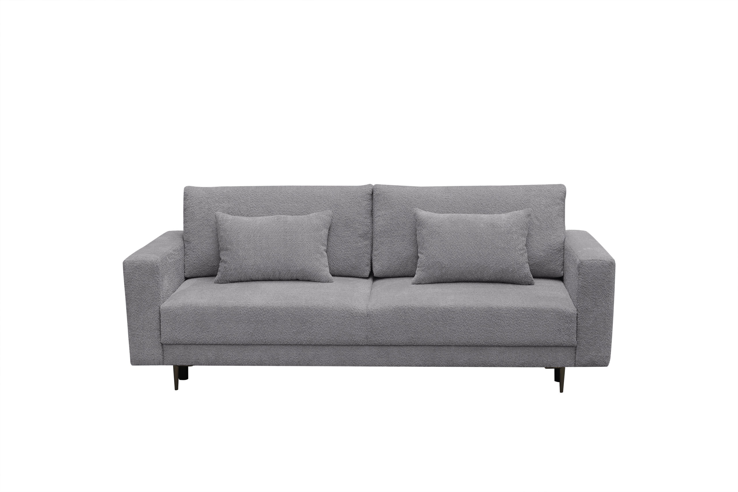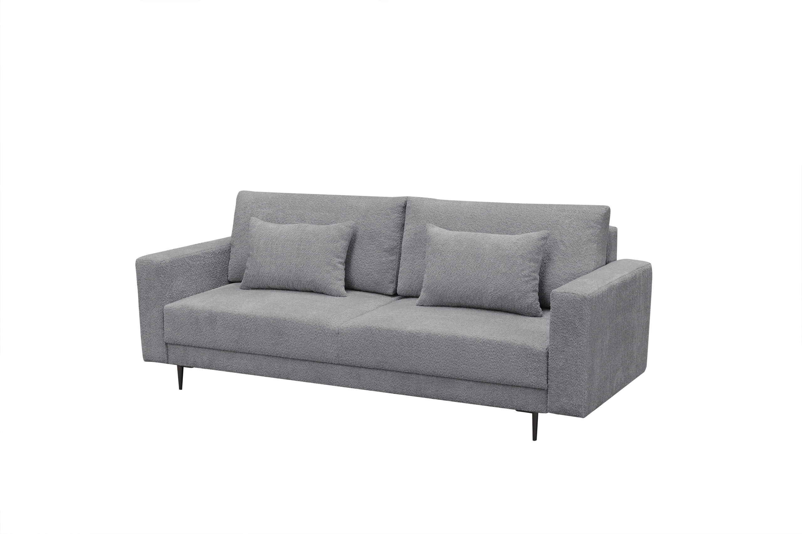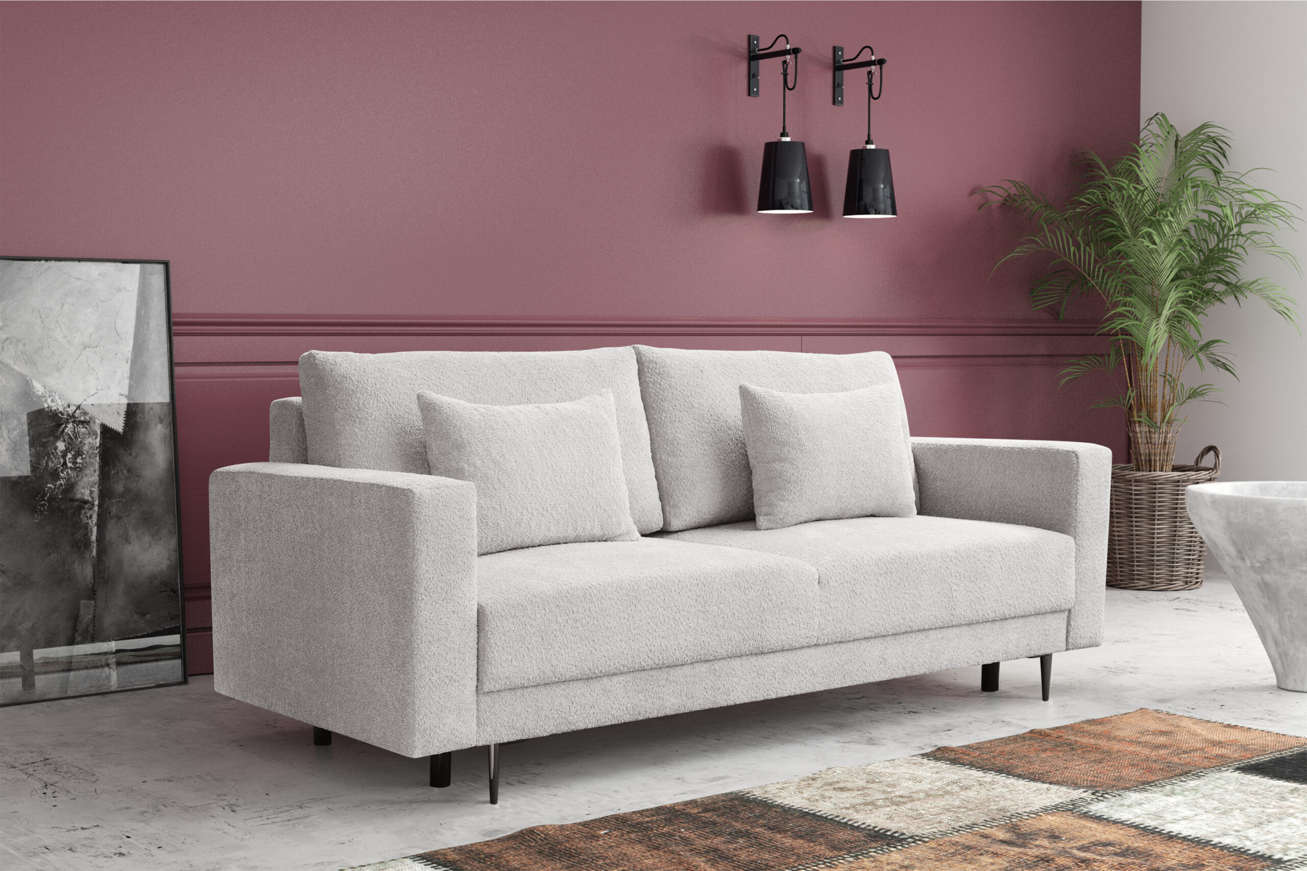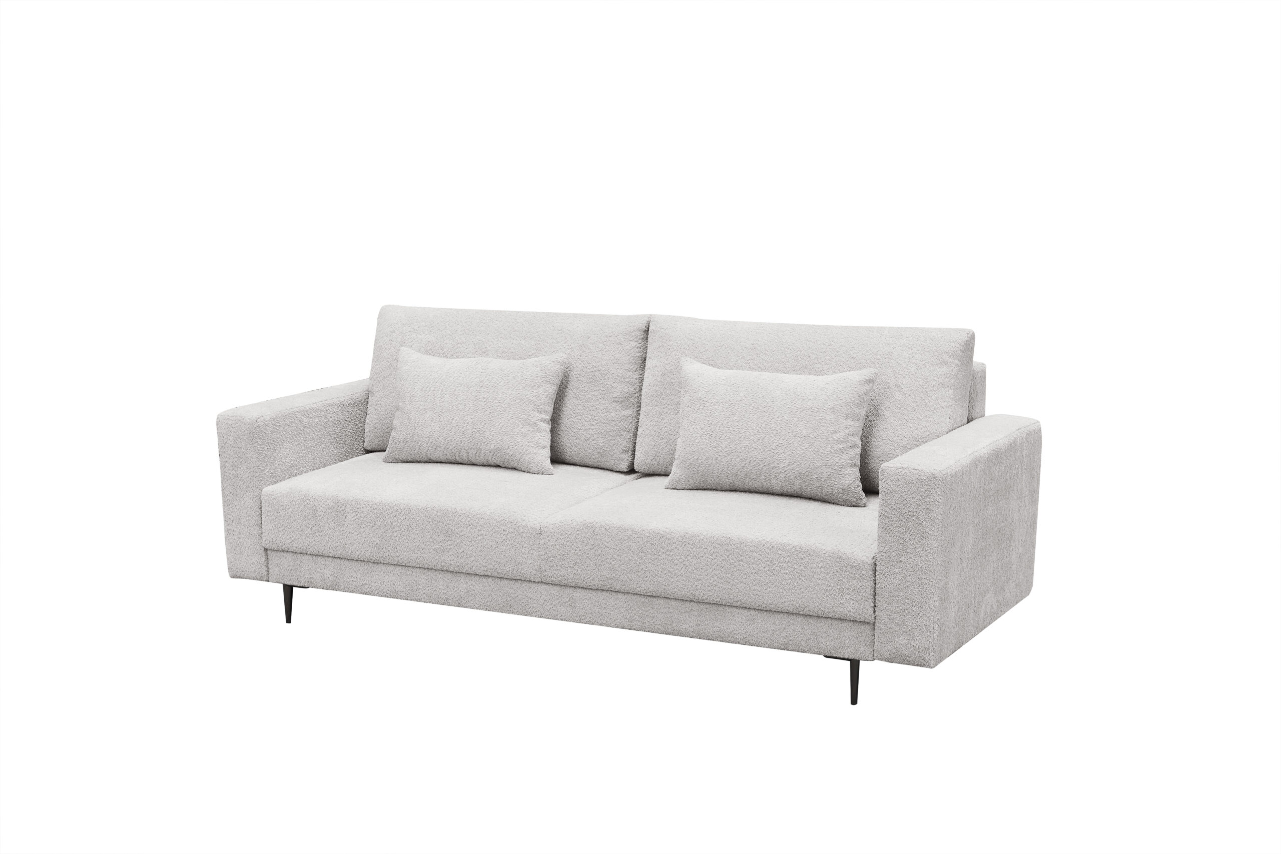 Sofa Lena to kanciasta bryła, która świetnie sprawdzi się w nowoczesnych wnętrzach. Tkanina, która została zaprezentowana na sofie wyróżnia się charakterystyczna supełkową fakturą. Tkanina nawiązująca wyglądem do baranka nie tylko dobrze wygląda i dodaje naszym meblom uroku, ale też jest niezwykle miła w dotyku. W siedzisku została zastosowana sprężyna falista oraz pianka wysokiej jakości dzięki czemu będziemy cieszyć się tym meblem na długie lata.