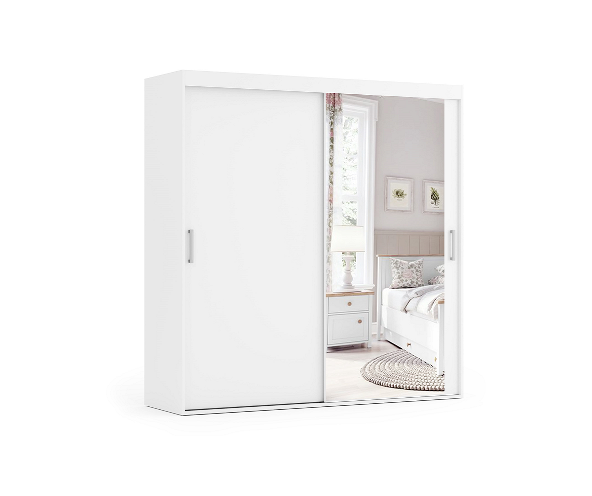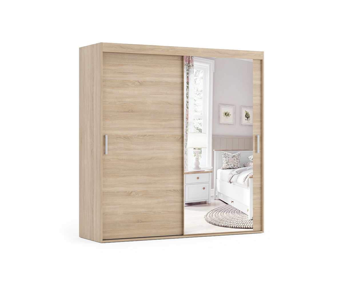 Many cechuje się elegancją, stylem oraz funkcjonalnością. Występuje w 3 wariantach kolorystycznych, a także jest wykonywana na wymiar. Szafa posiada drzwi przesuwne po obu stronach. Na naszej stronie są dostępne wszystkie wymiary szafy. Szafa dodatkowo posiada lustro po jednej stronie drzwi. Wykonana jest z płyty wiórowej o grubości 18 mm.