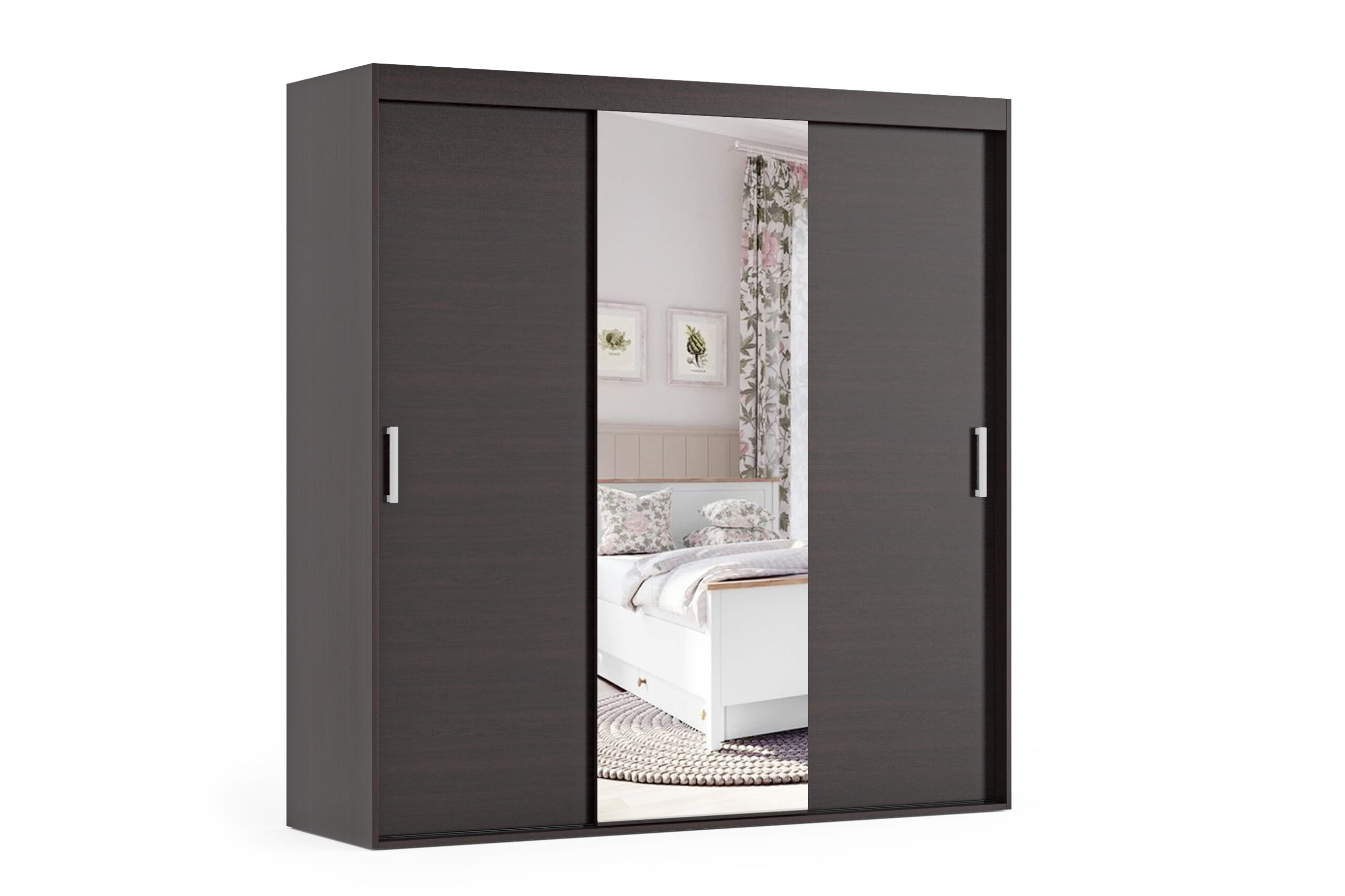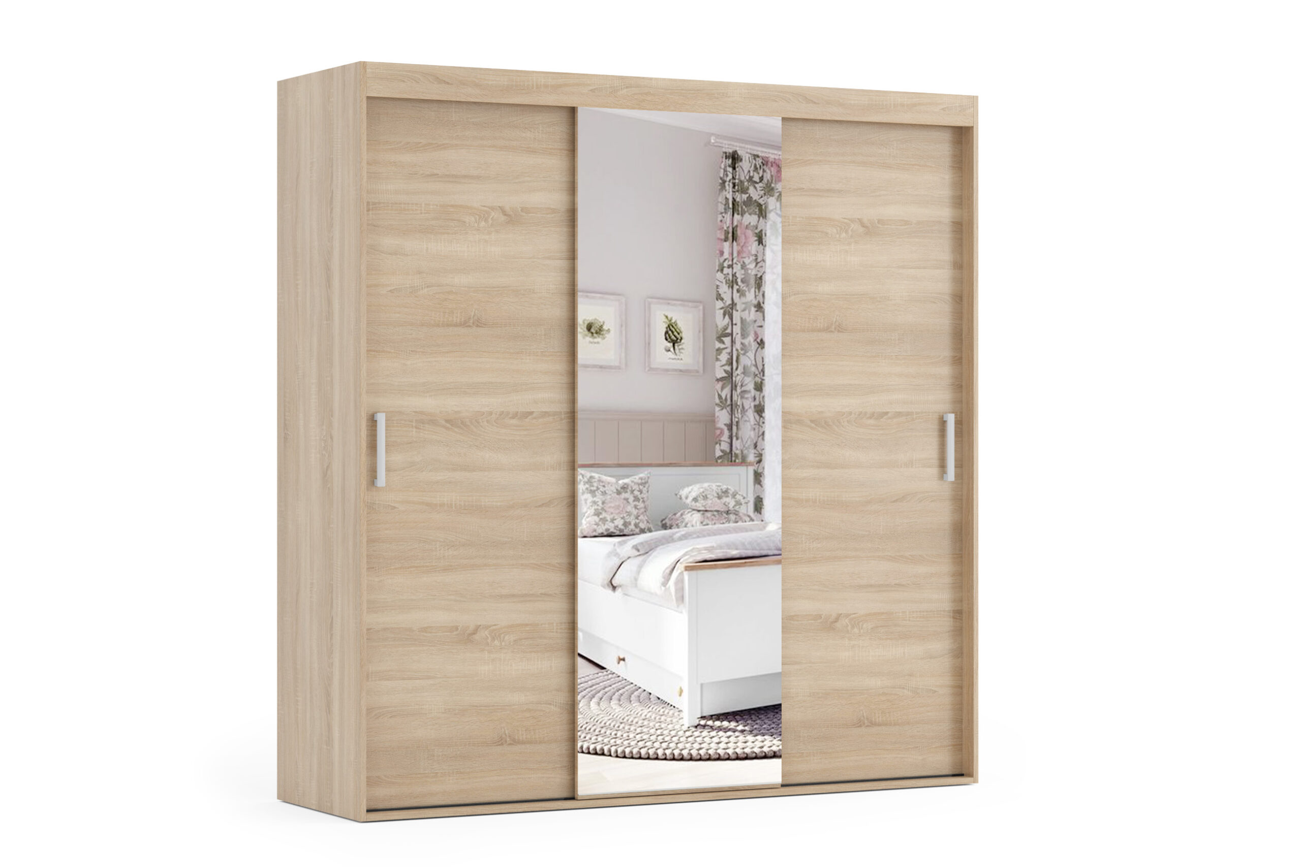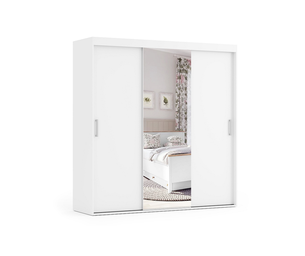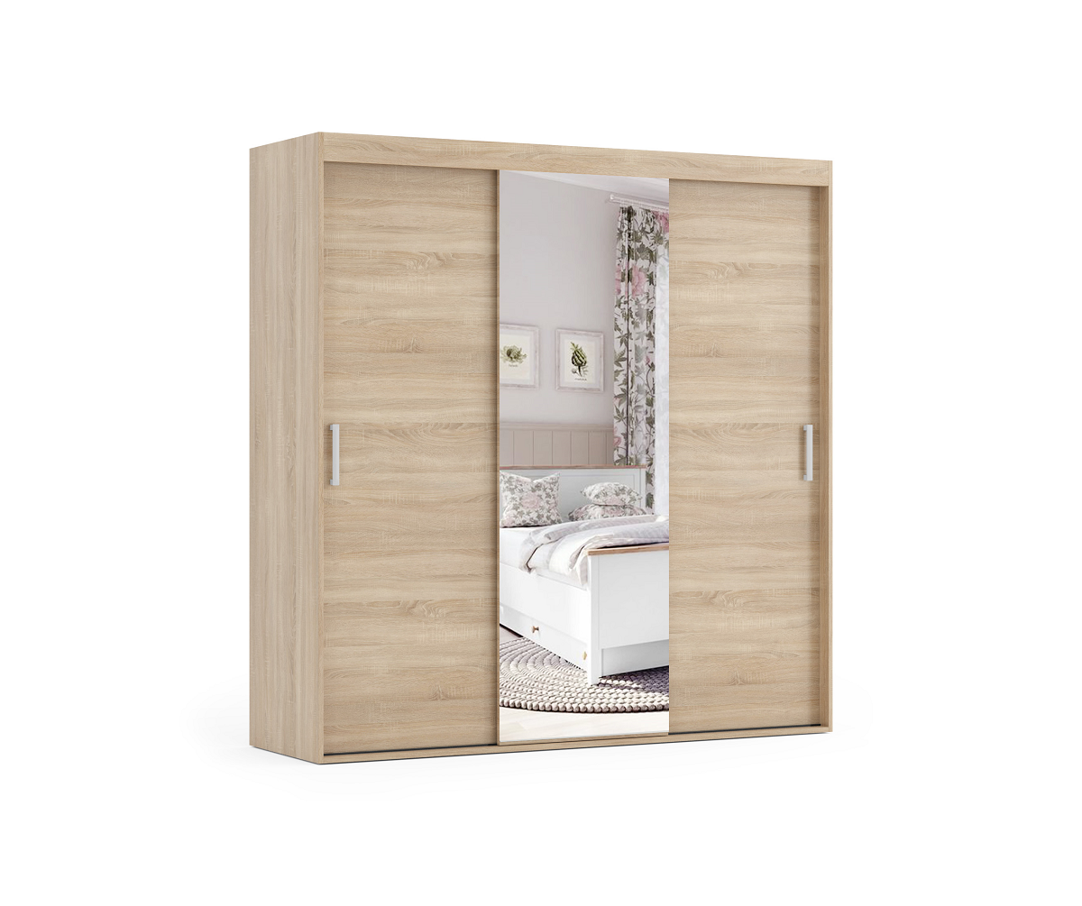 Makro to szafa, która przykuje oko swoim wyglądem oraz funkcjonalnością. Występuje w 3 wariantach kolorystycznych, a także jest wykonywana na wymiar. Szafa posiada drzwi przesuwne po obu stronach. Na naszej stronie są dostępne wszystkie wymiary szafy. Szafa dodatkowo posiada lustro na środku szafy. Wykonana jest z płyty wiórowej o grubości 18 mm.