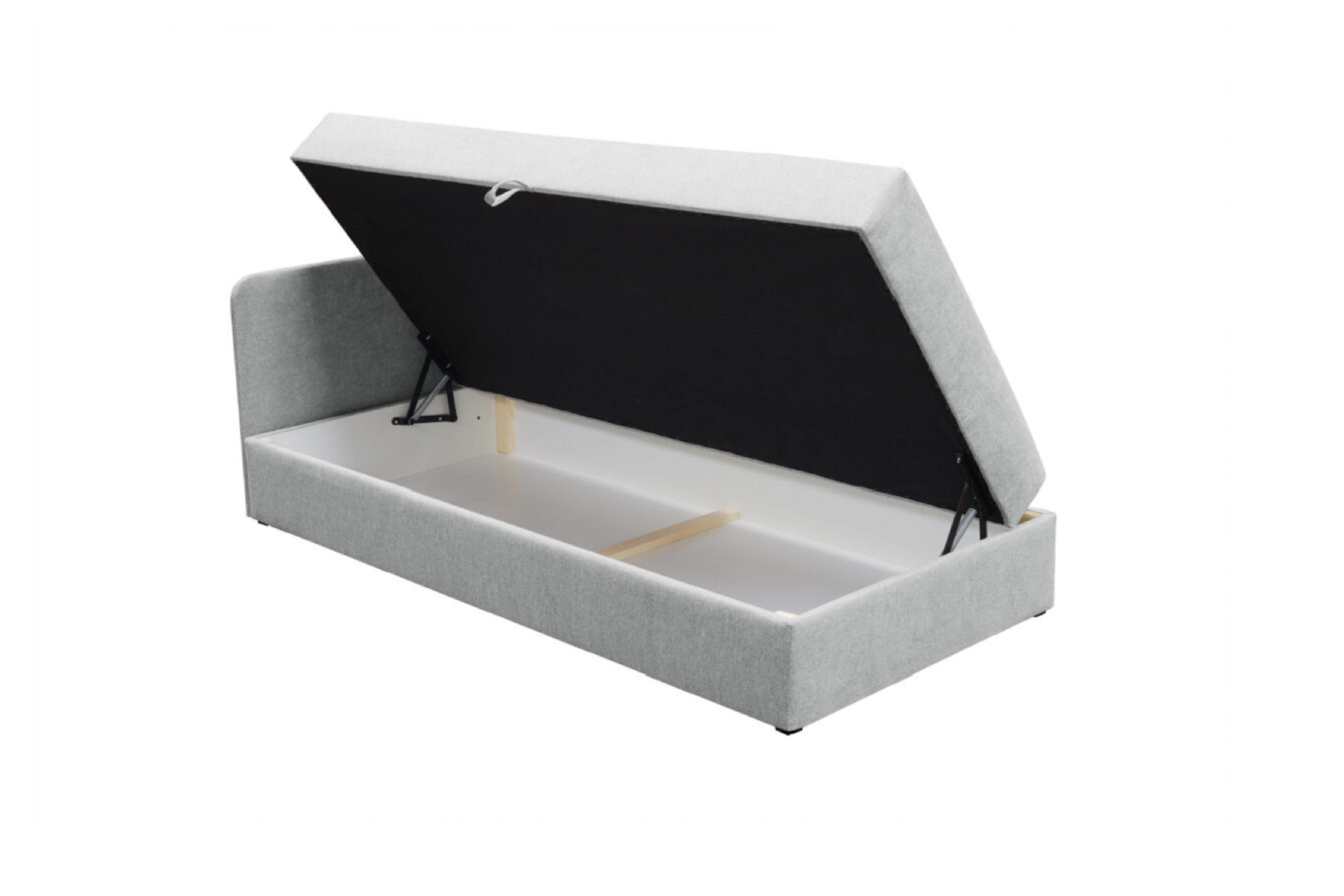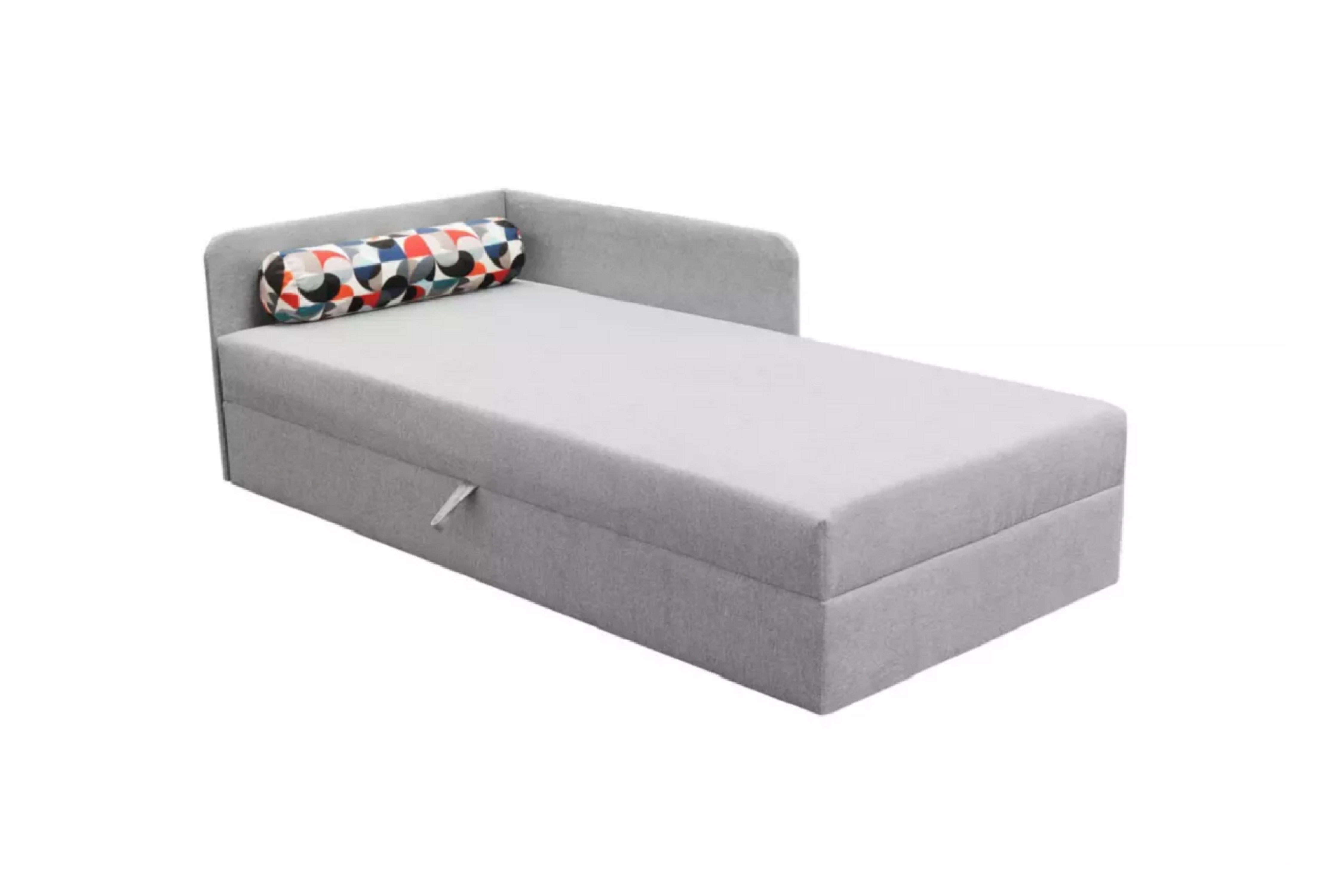 Pianka poliuretanowa, Drewniany stelaż z płytą wiórową, Pojemnik na pościel, Funkcja spania , Szerokość 90 , Głębokość 194, Wysokość 60, Powierzchnia spania 190 x 90, Kolor szary (tkanina Alfa 13)
